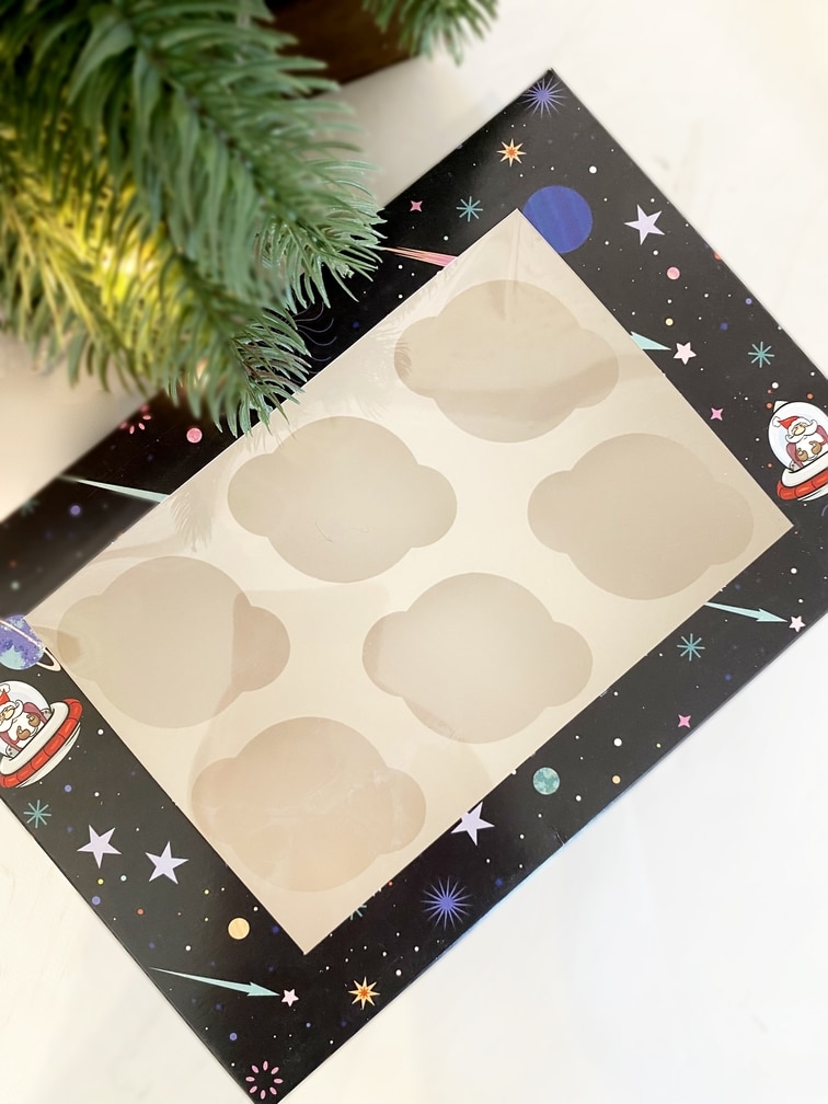 Упаковка под 6 капкейков с окном «Космический Новый Год»