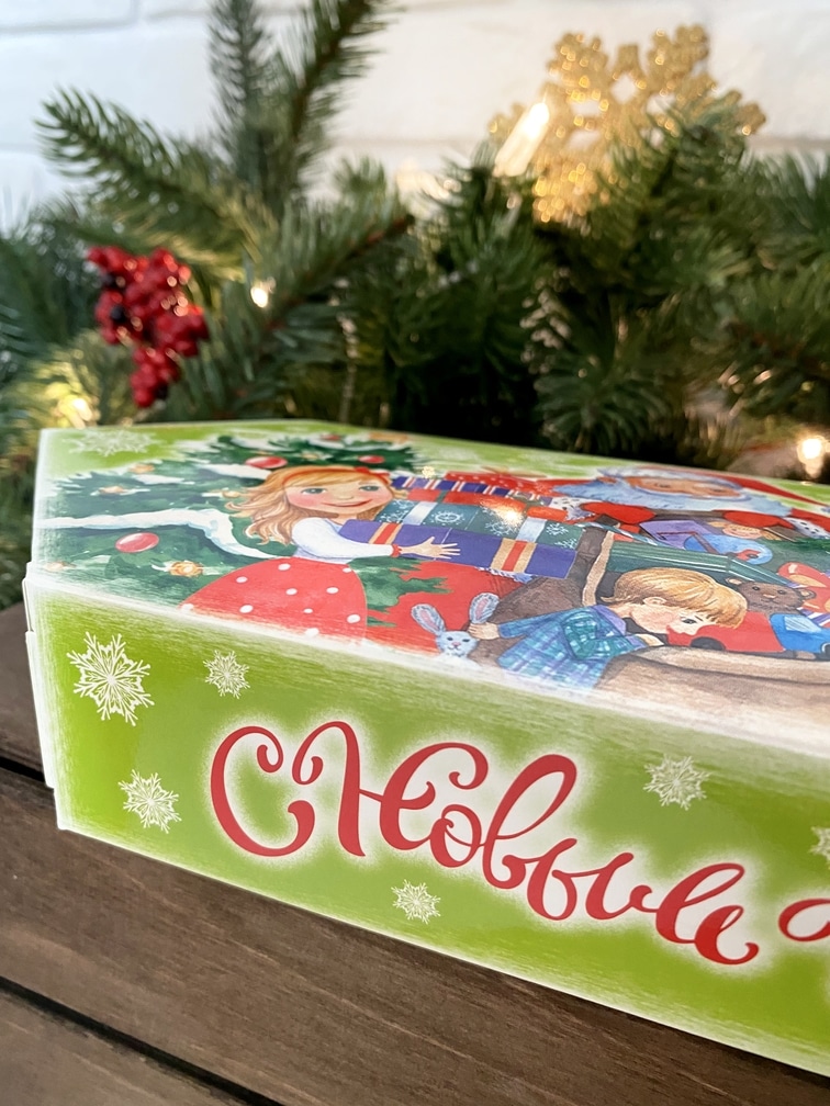 Коробка новогодняя подарочная конфета Дед Мороз и дети, 100х200х43 мм