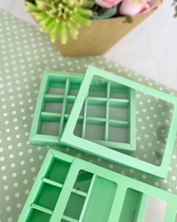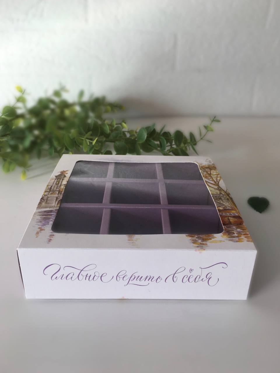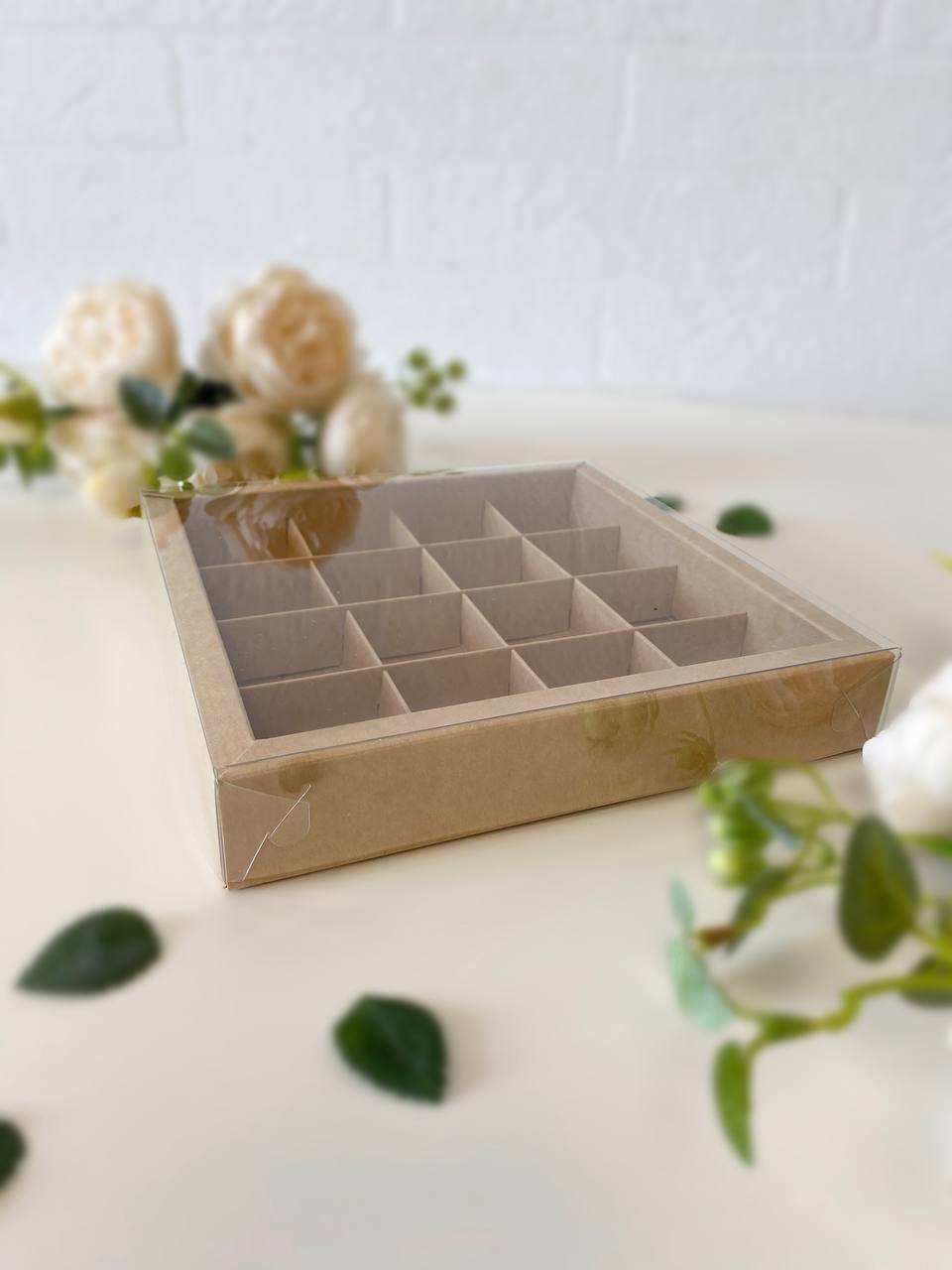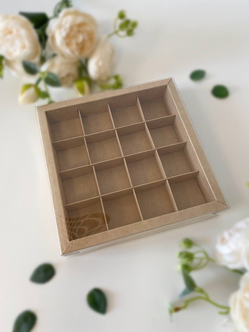 Коробка под 16 конфет с тонкими разделителями, крафт