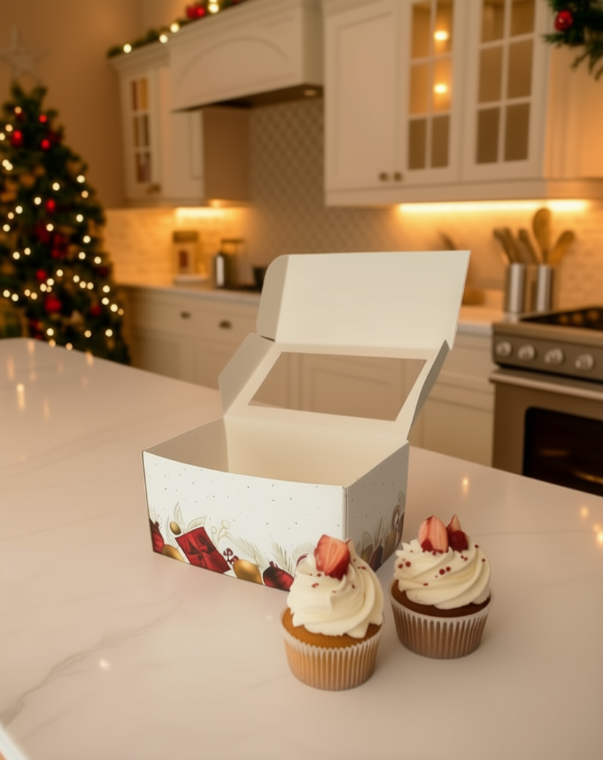 Коробка с окном под 1 капкейк/маффин/пирожное с окном Ёлочки, 92х92х111