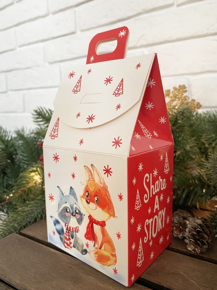 Коробка новогодняя подарочная Поделись историей, 91х70х157 (+30) мм (домик )