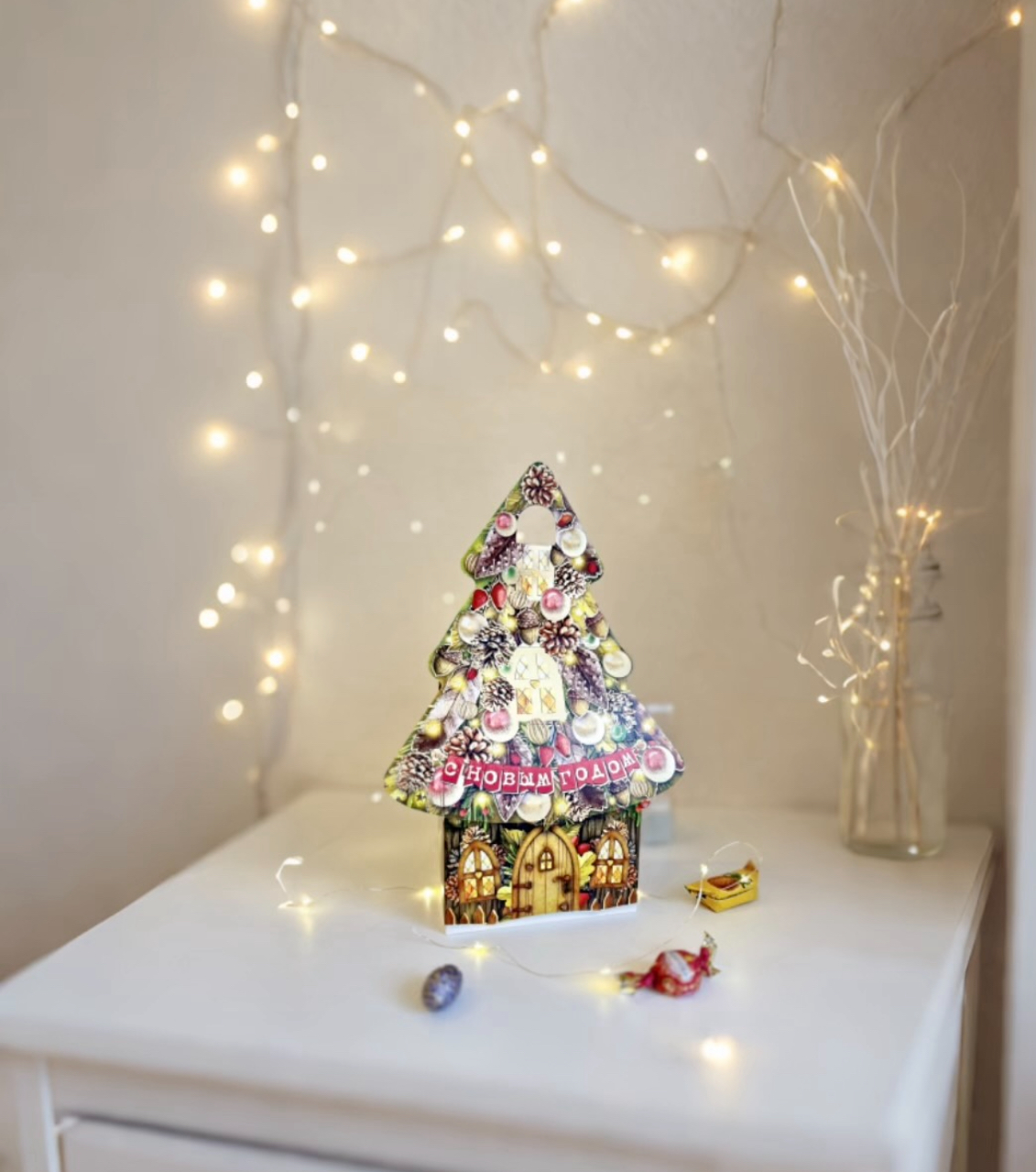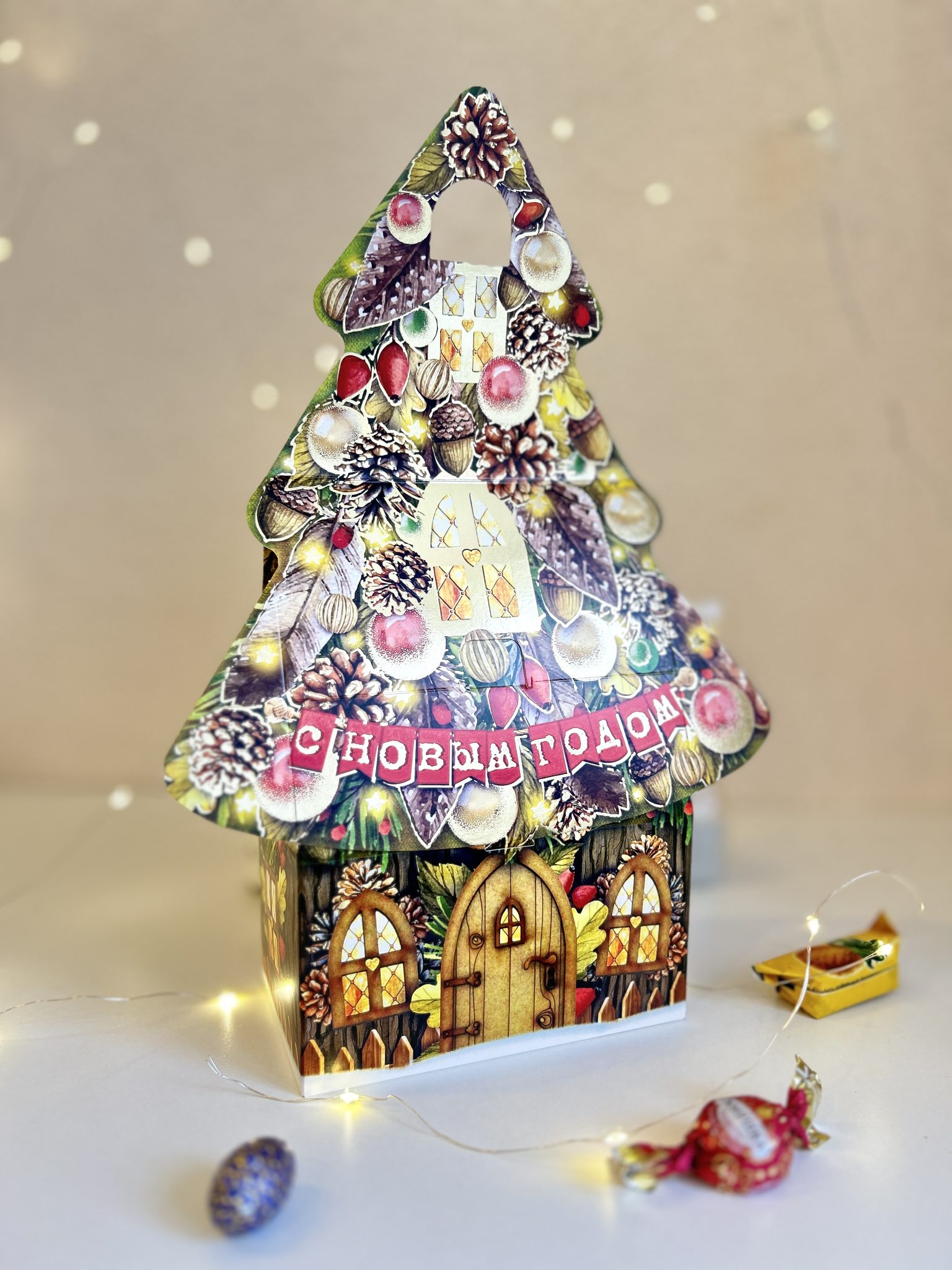Коробка новогодняя подарочная Ёлка-Теремок, 157х95х225 (+140) мм (коробка-елочка)