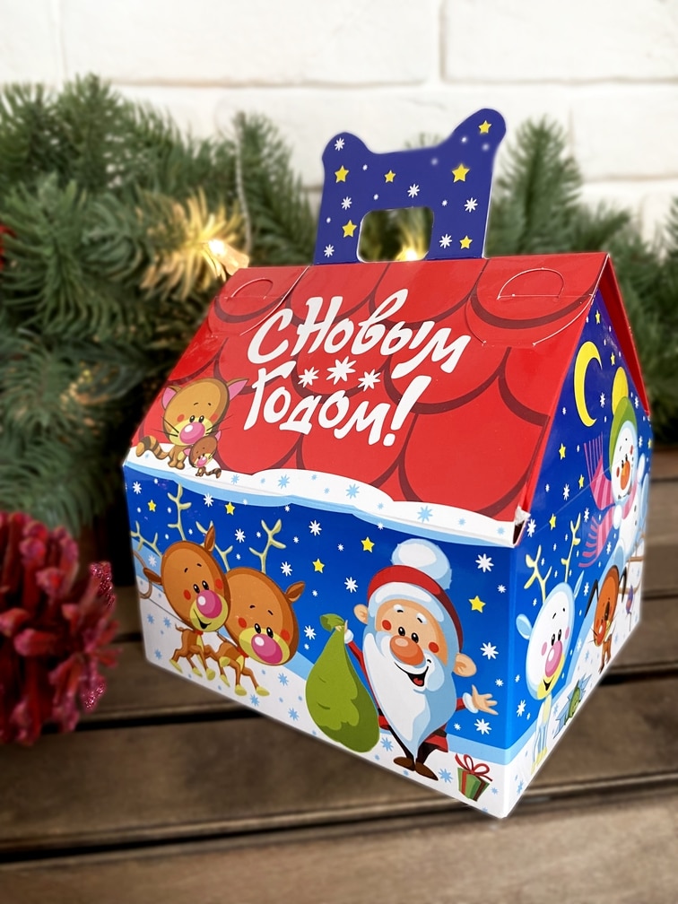 Коробка новогодняя подарочная Акварельная серия, 91х70х157 (+30) мм (домик)