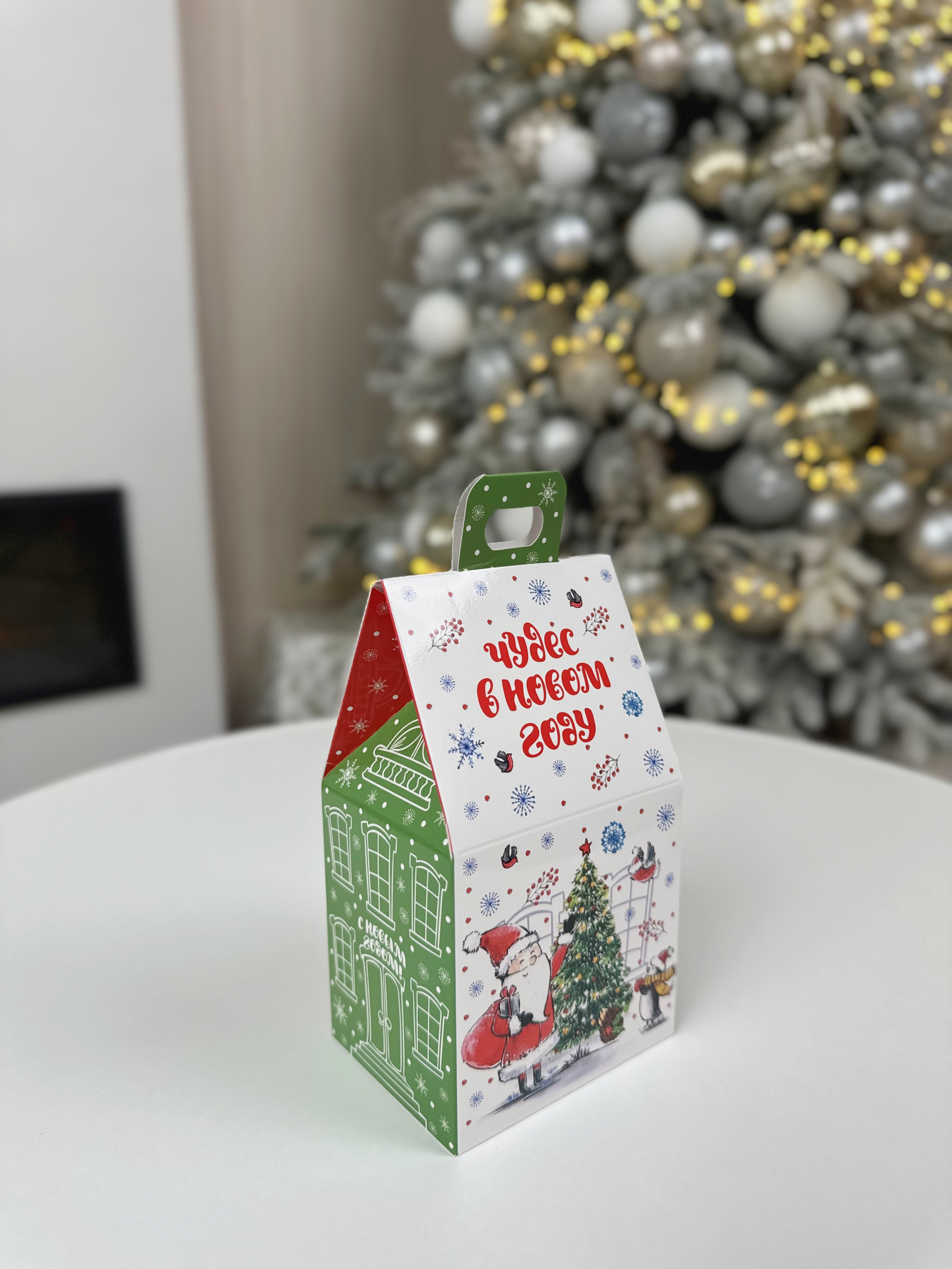 Коробка новогодняя подарочная Акварельная серия, 91х70х157 (+30) мм (домик)