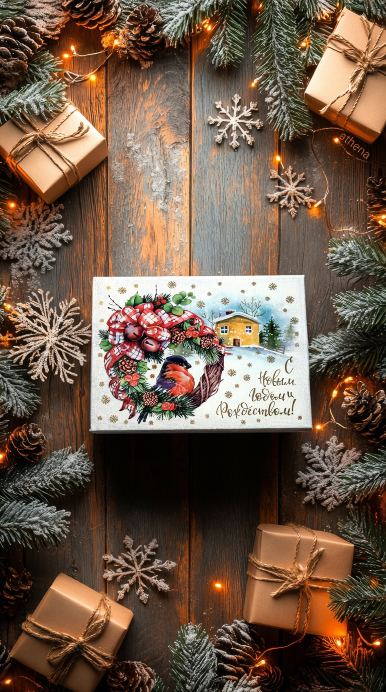 Коробка новогодняя подарочная Новогодняя гармония, 210х150х57 мм (крышка/дно без окна)