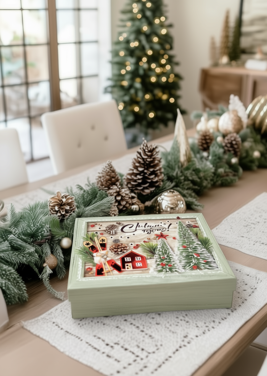 Коробка новогодняя подарочная Снежная мелодия, 158х158х63 мм (крышка/дно без окна)