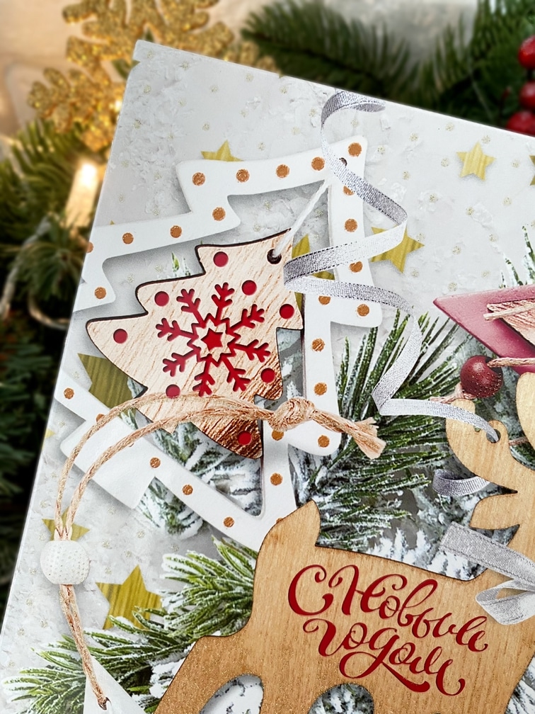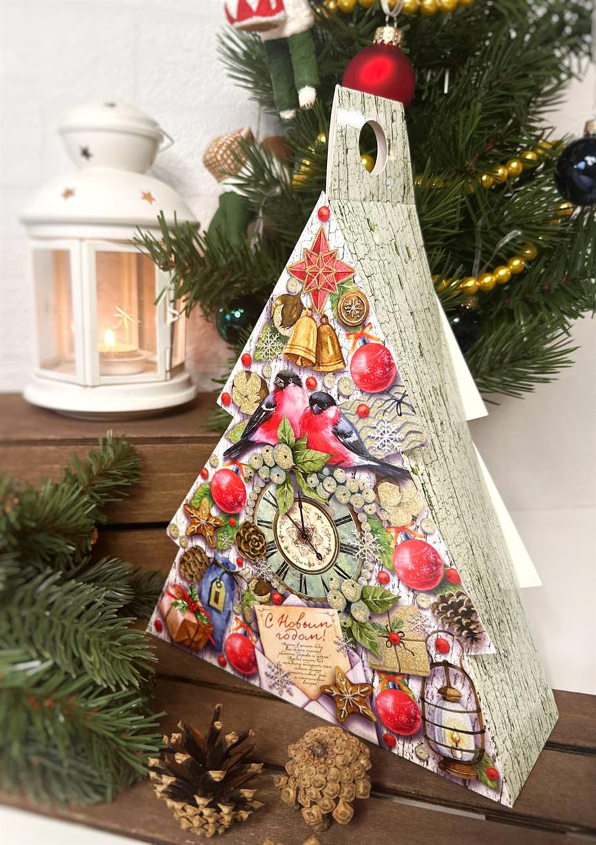 Коробка новогодняя подарочная Ёлочка декупаж, 209,6х70х235,5 (+45) мм (коробка елочка)