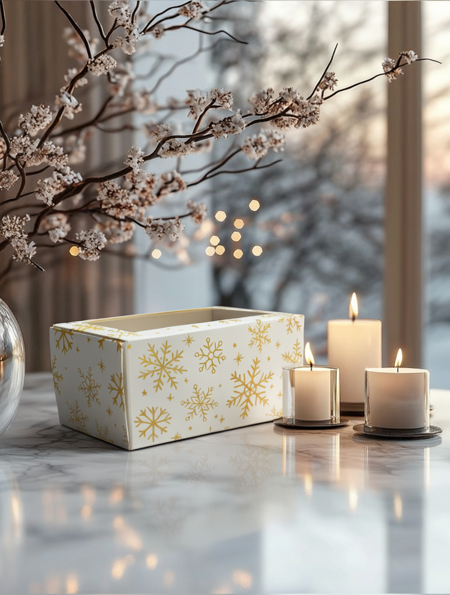 Коробка с окном под 2 капкейка Снежинки на белом, 160х100х80 мм