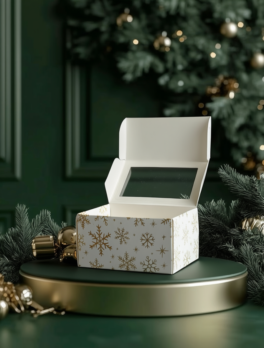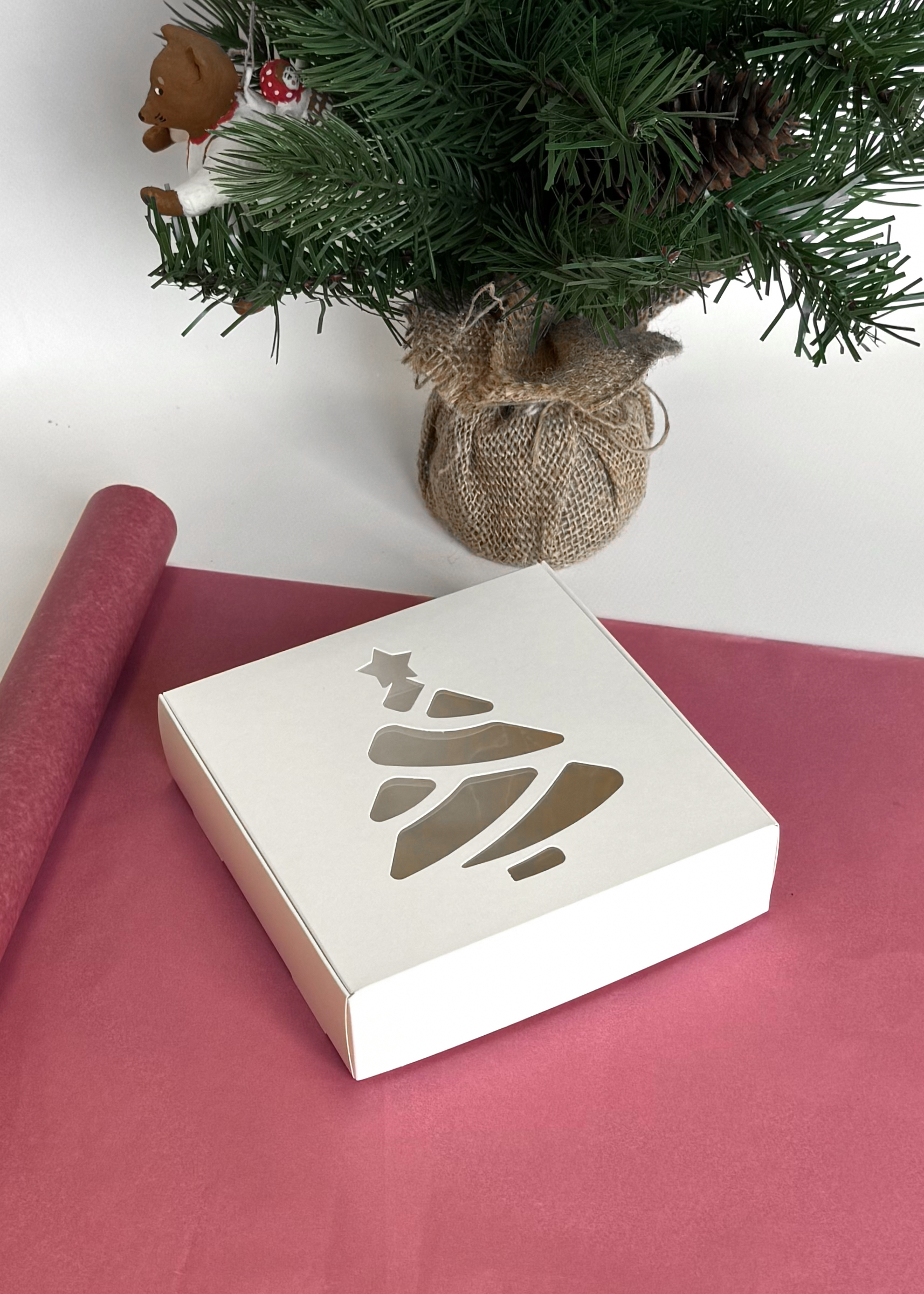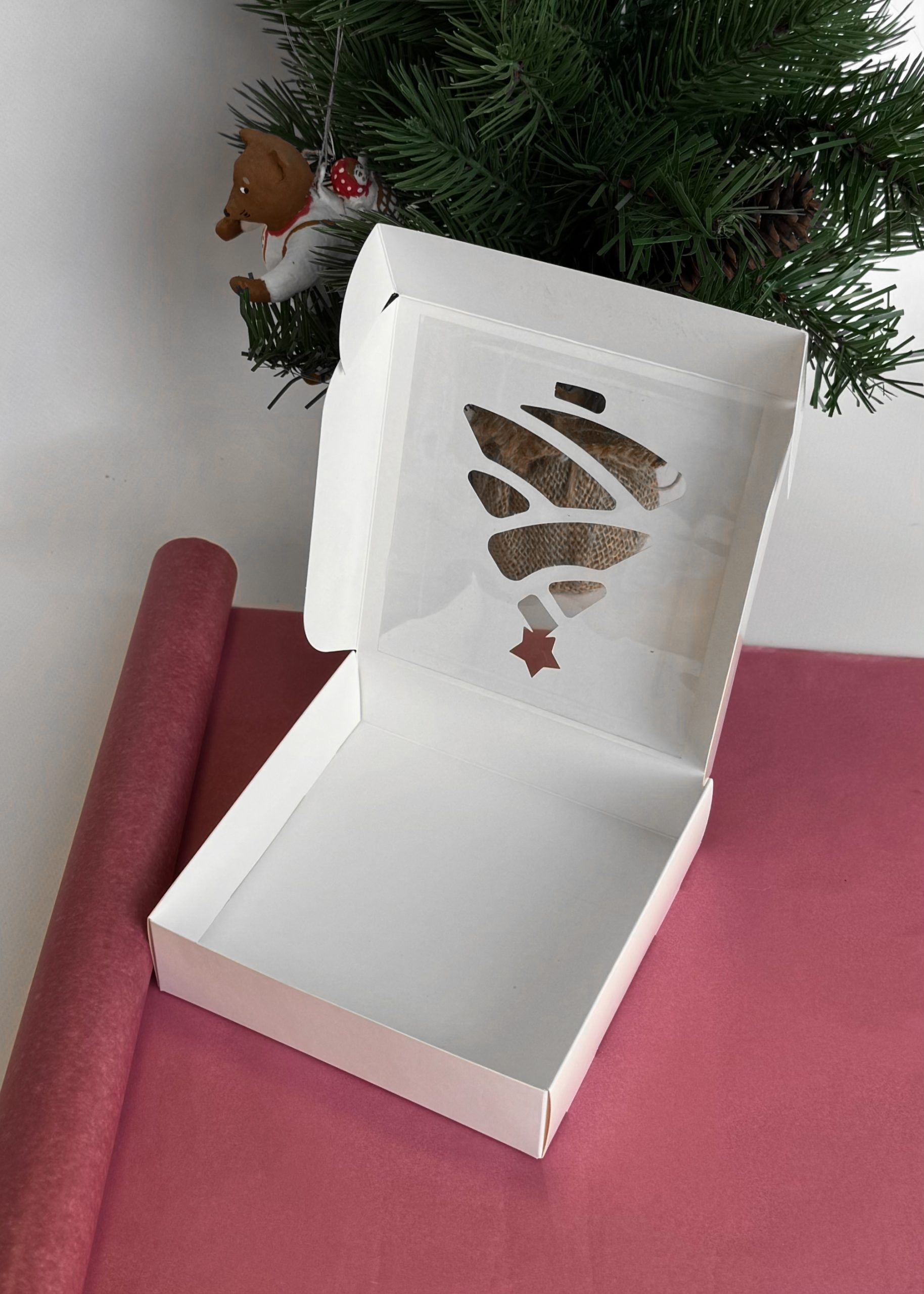 Коробка с окном под 4 макаронс/моти/конфеты Блестящий праздник, 126х126х35 мм (крышка-дно)