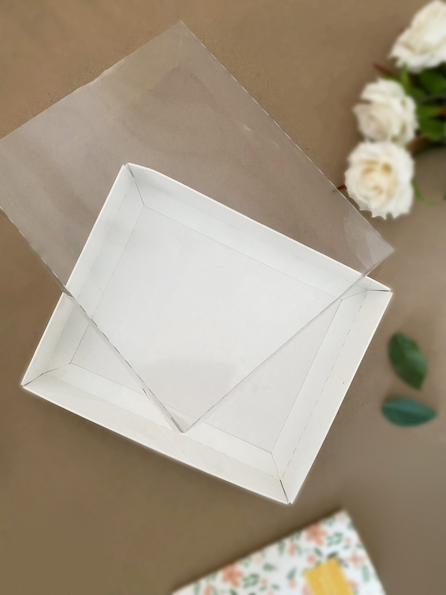 Универсальная коробка с прозрачной крышкой 16х16х4 см., белая