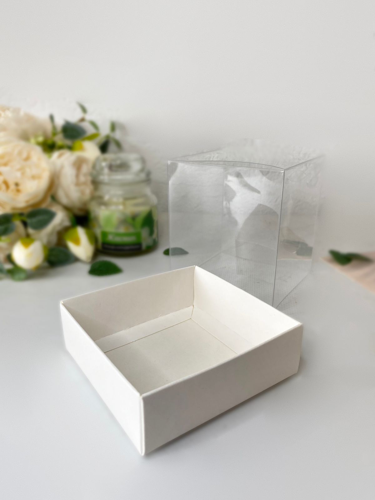 Универсальная коробка с прозрачной крышкой 16х16х4 см., белая