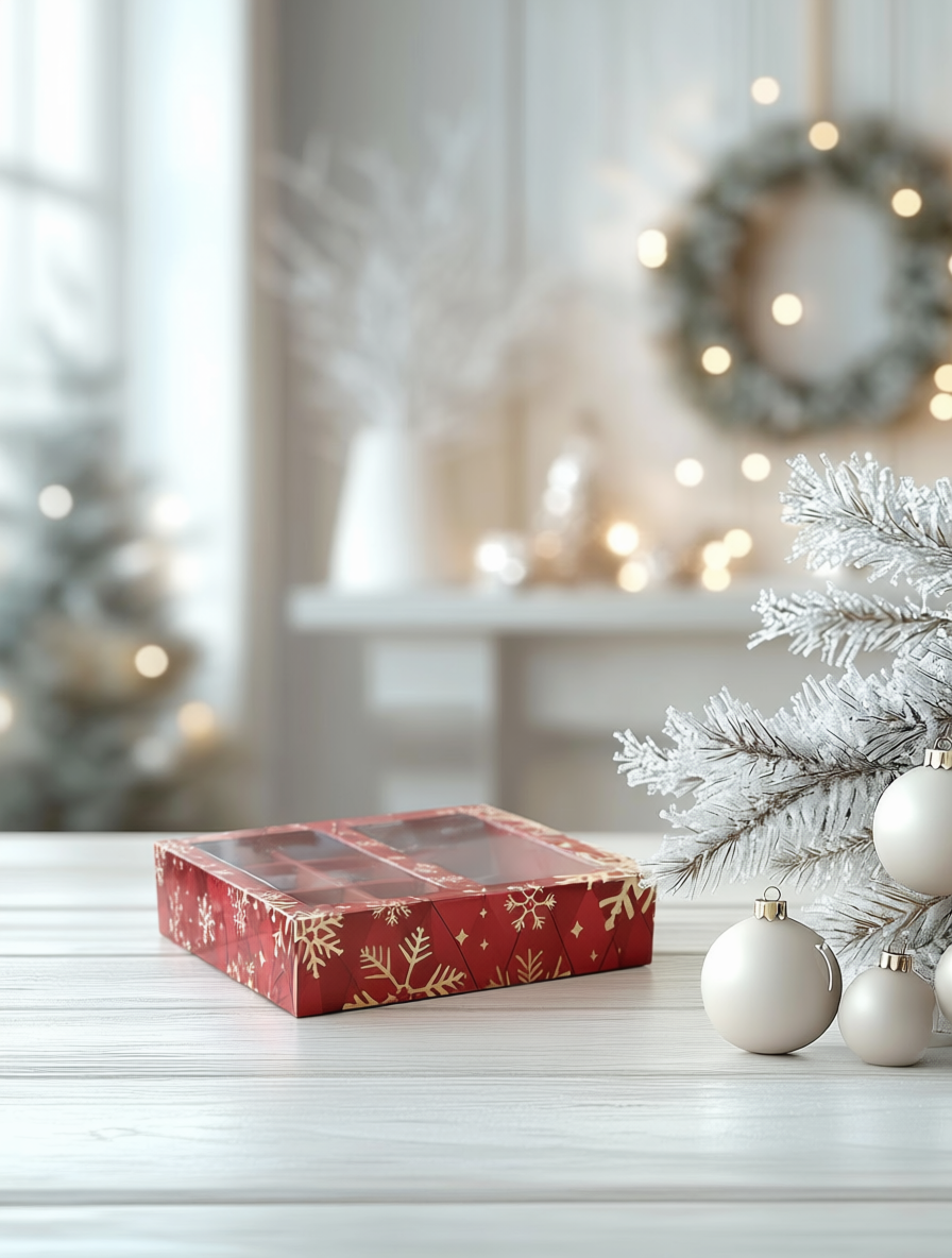 Коробка с окном 8 конфет плитка шоколада Золотые снежинки, 177х178,5х38,5 мм (дно и обечайка)
