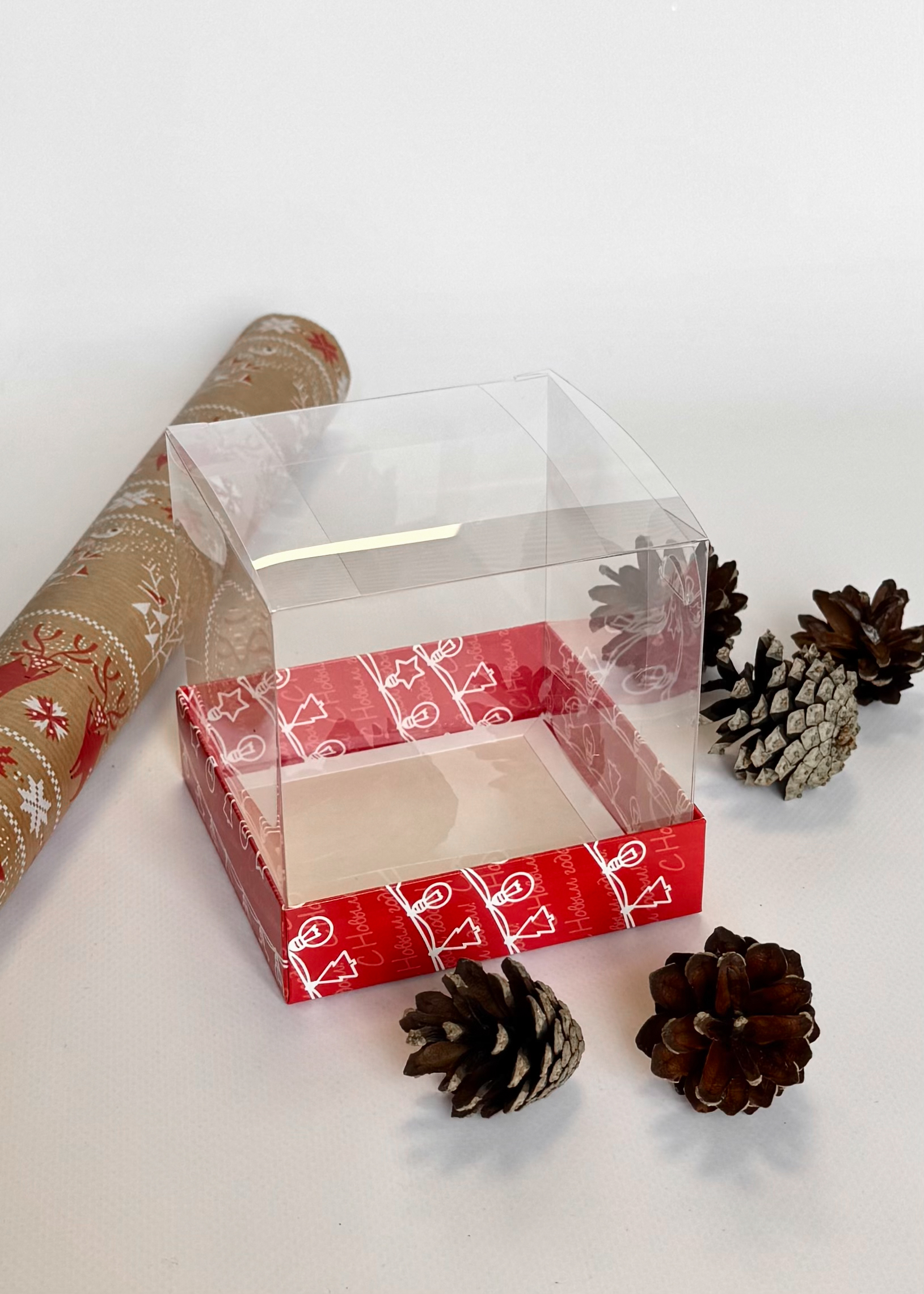 Коробка с прозрачной крышкой под под капкейки/пирожные/бенто-торт Праздничная Гирлянда, 100*100*100 мм