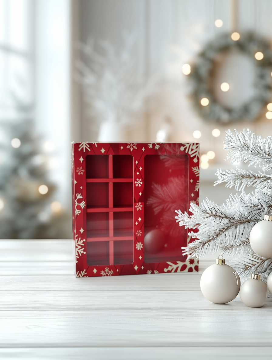 Коробка с окном 8 конфет плитка шоколада Золотые снежинки, 177х178,5х38,5 мм (дно и обечайка)