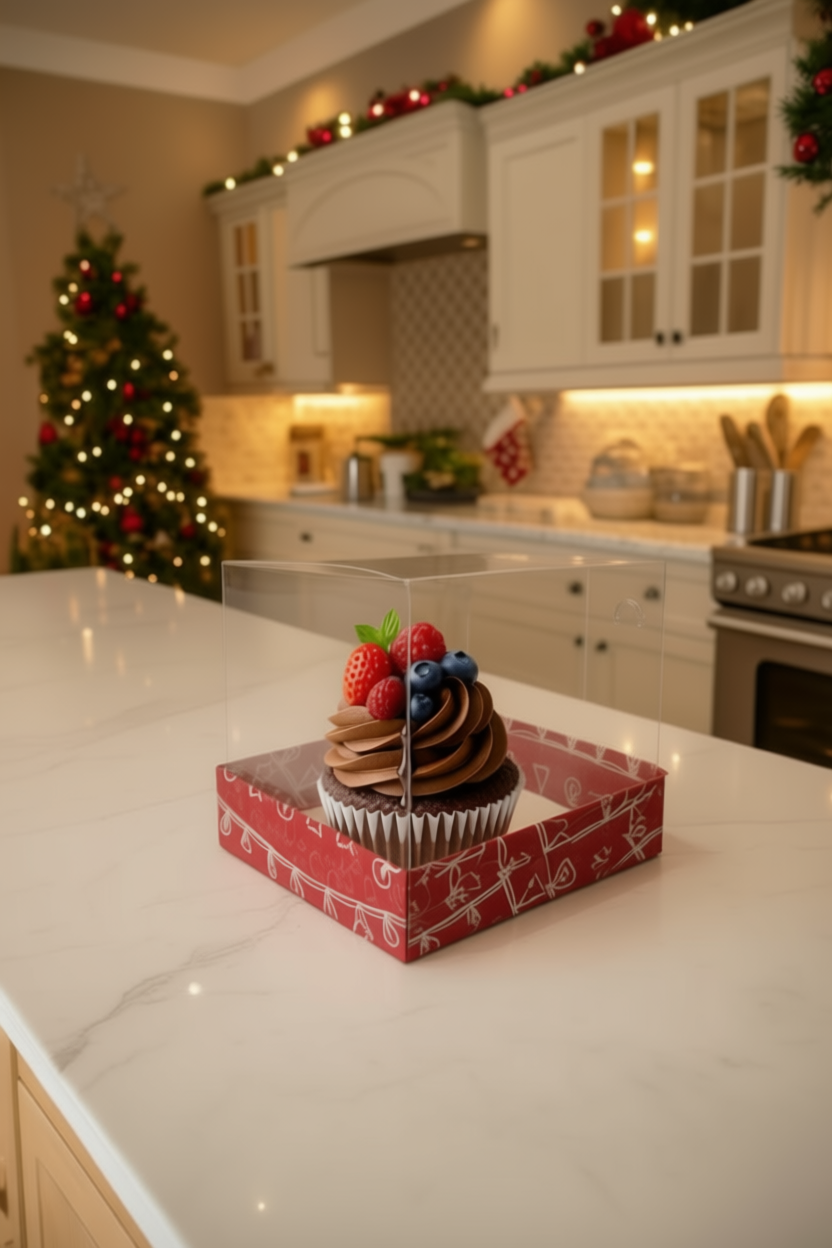 Коробка с прозрачной крышкой под под капкейки/пирожные/бенто-торт Праздничная Гирлянда, 100*100*100 мм