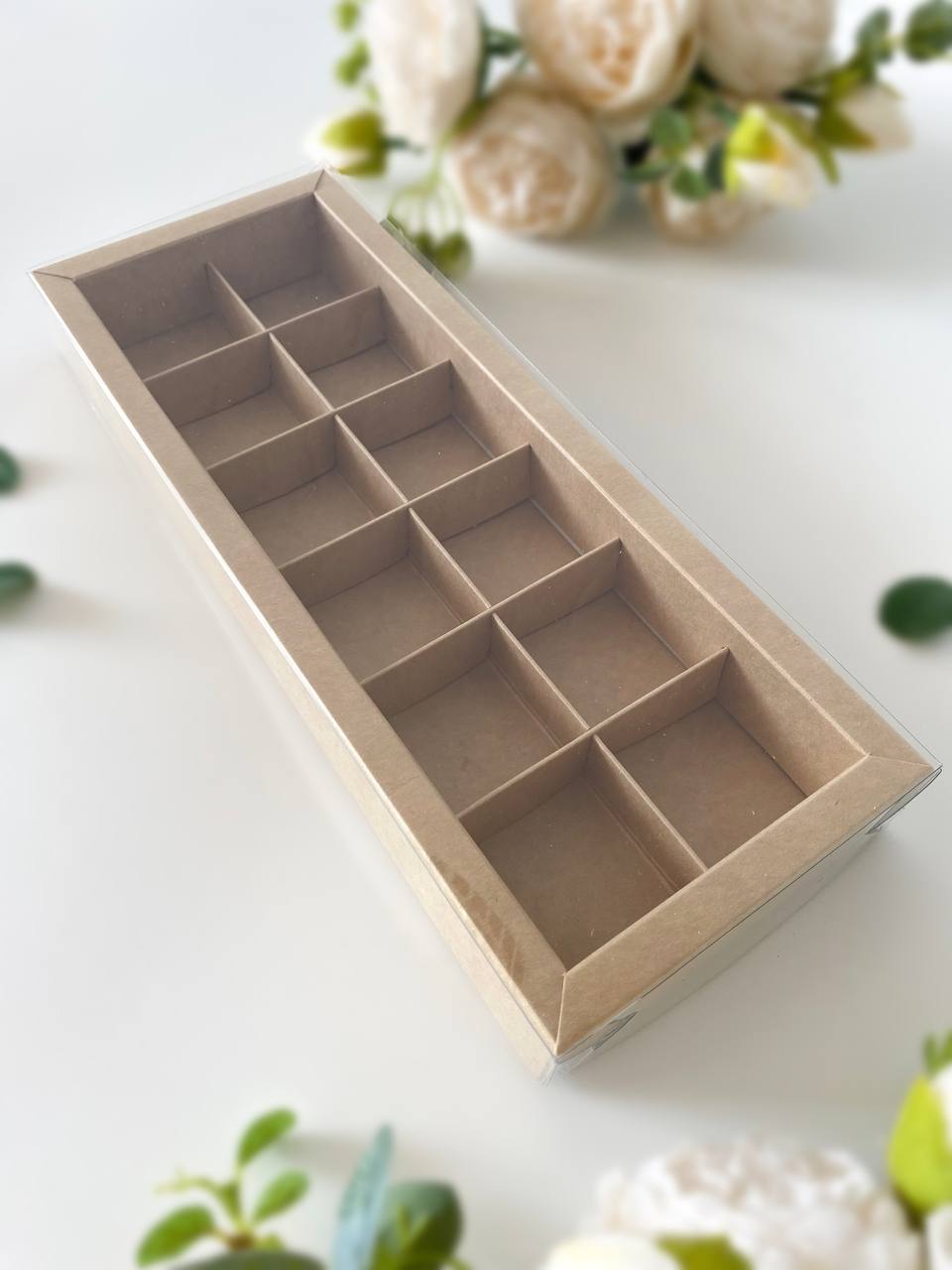 Коробка под 12 конфет с тонкими разделителями, крафт