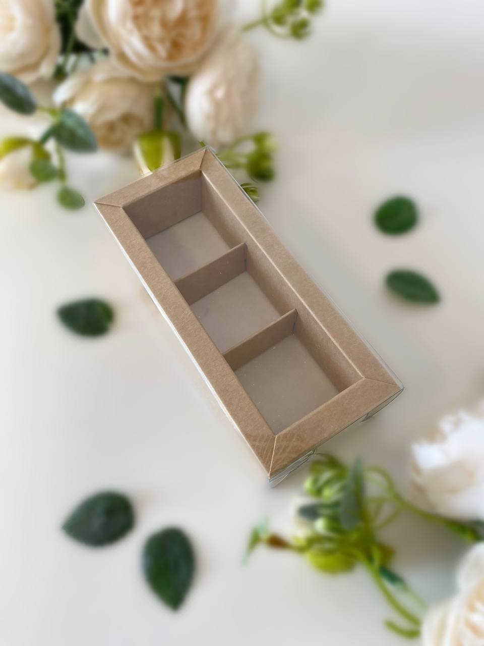 Упаковка под 3 конфеты с тонкими разделителями, крафт