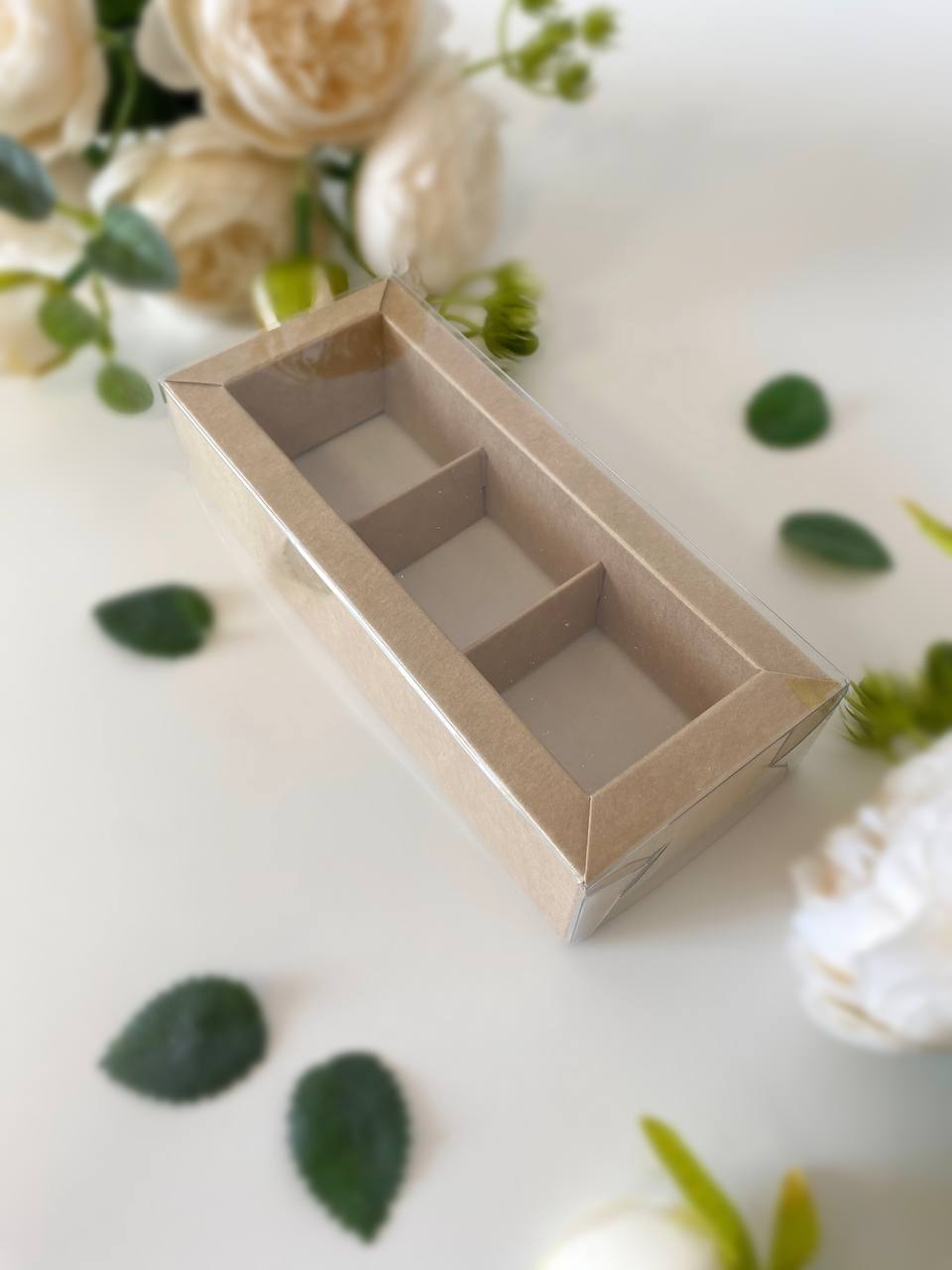 Упаковка под 3 конфеты с тонкими разделителями, крафт