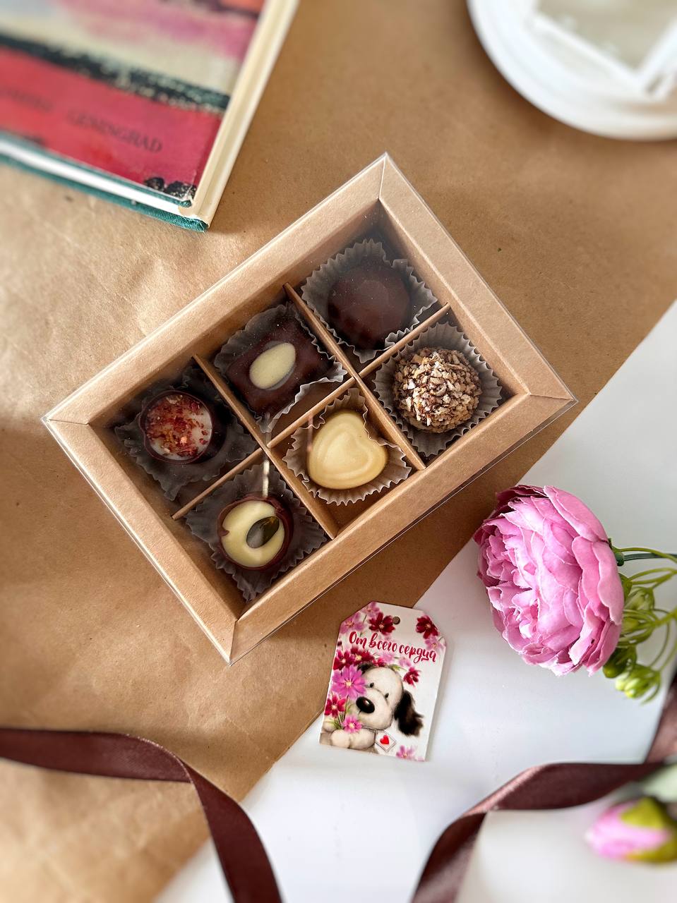 Упаковка под 6 конфет с тонкими разделителями, крафт