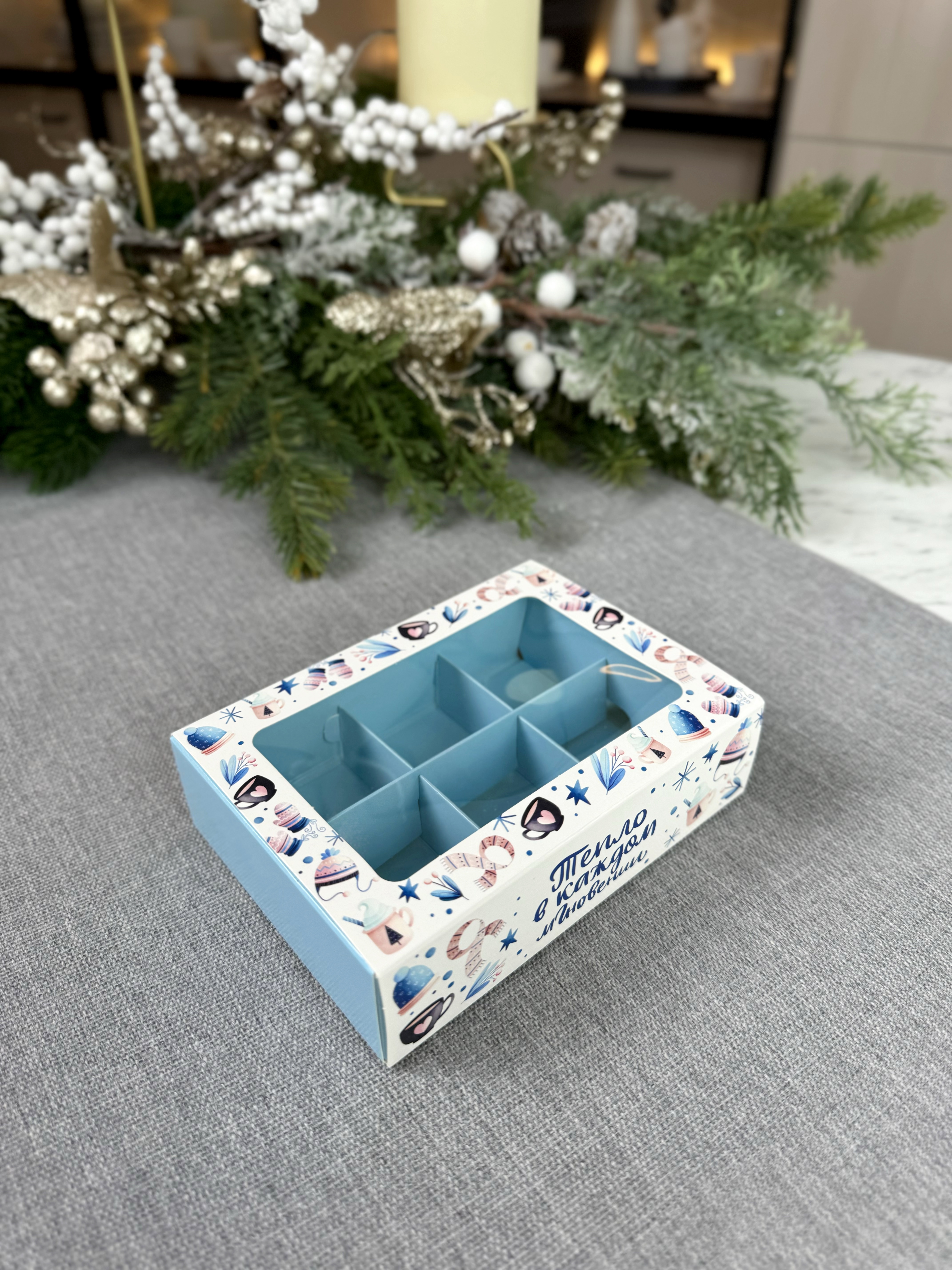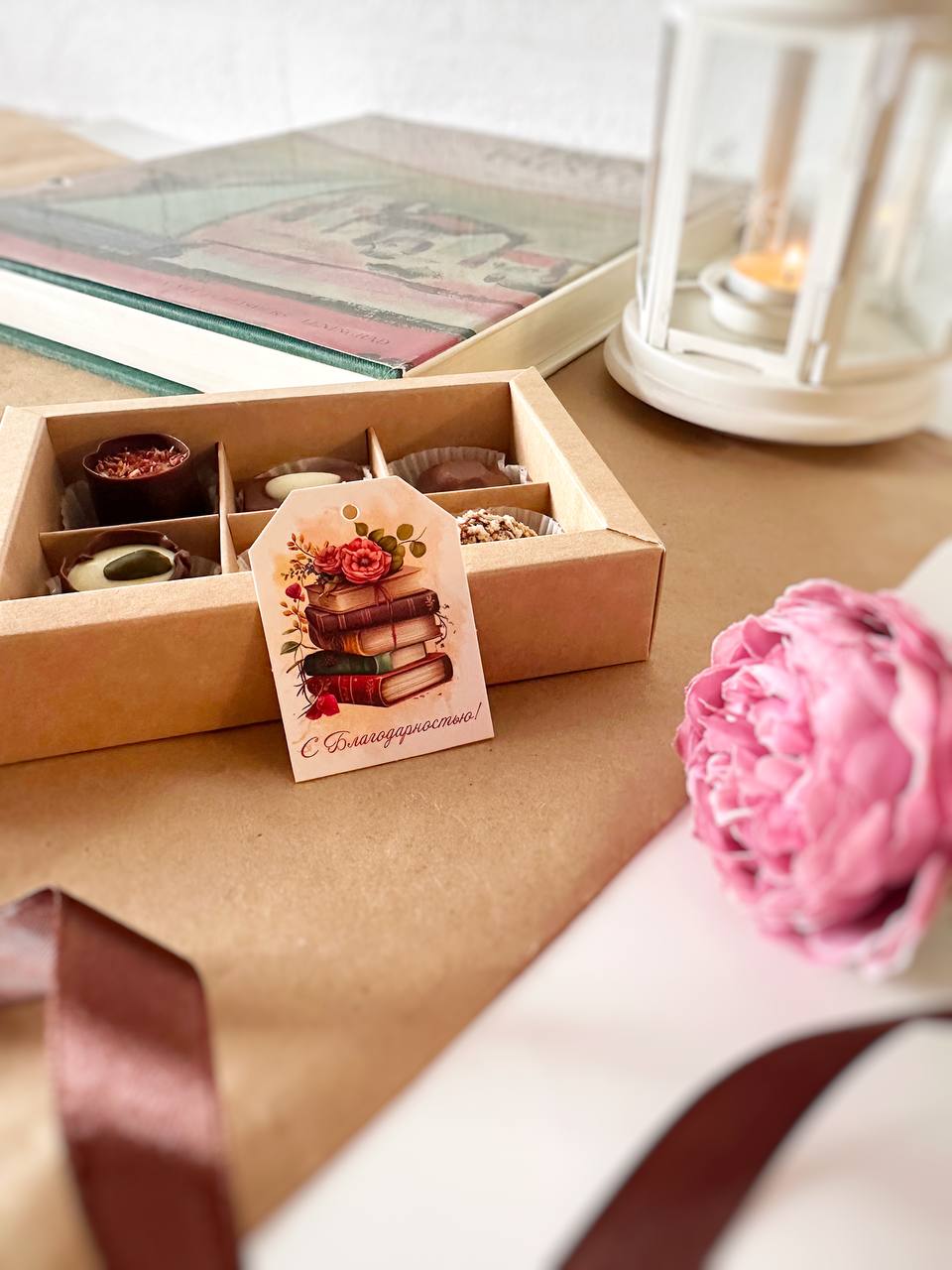 Упаковка под 6 конфет с тонкими разделителями, крафт