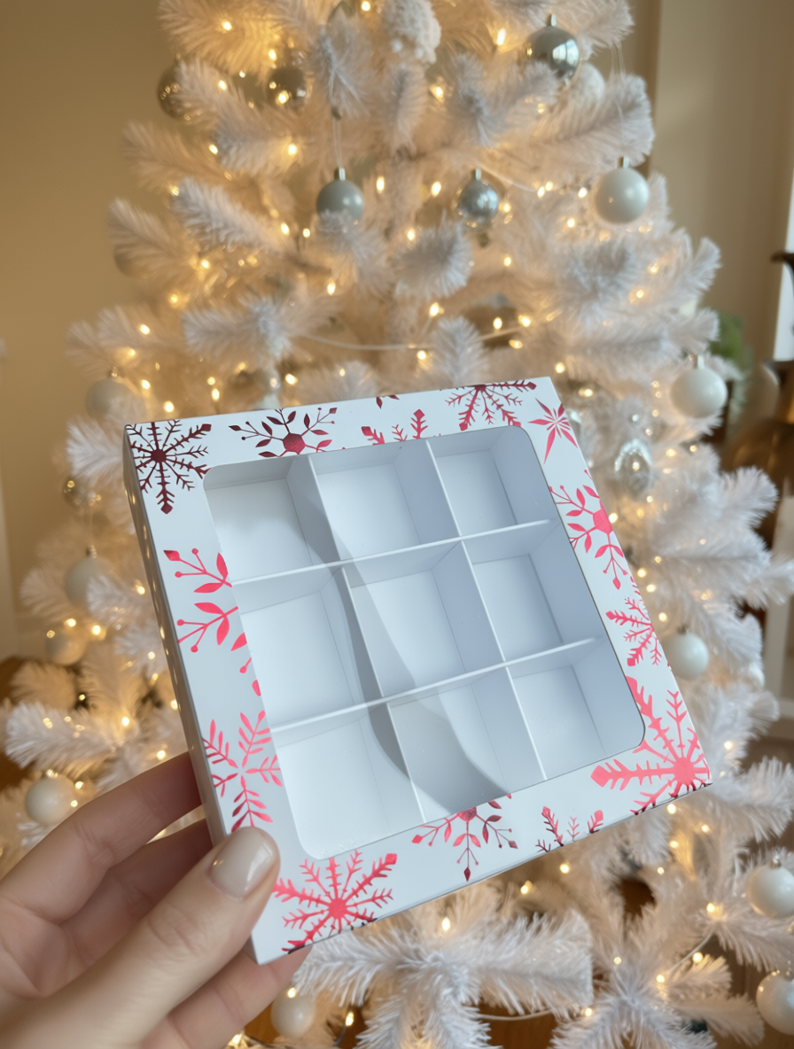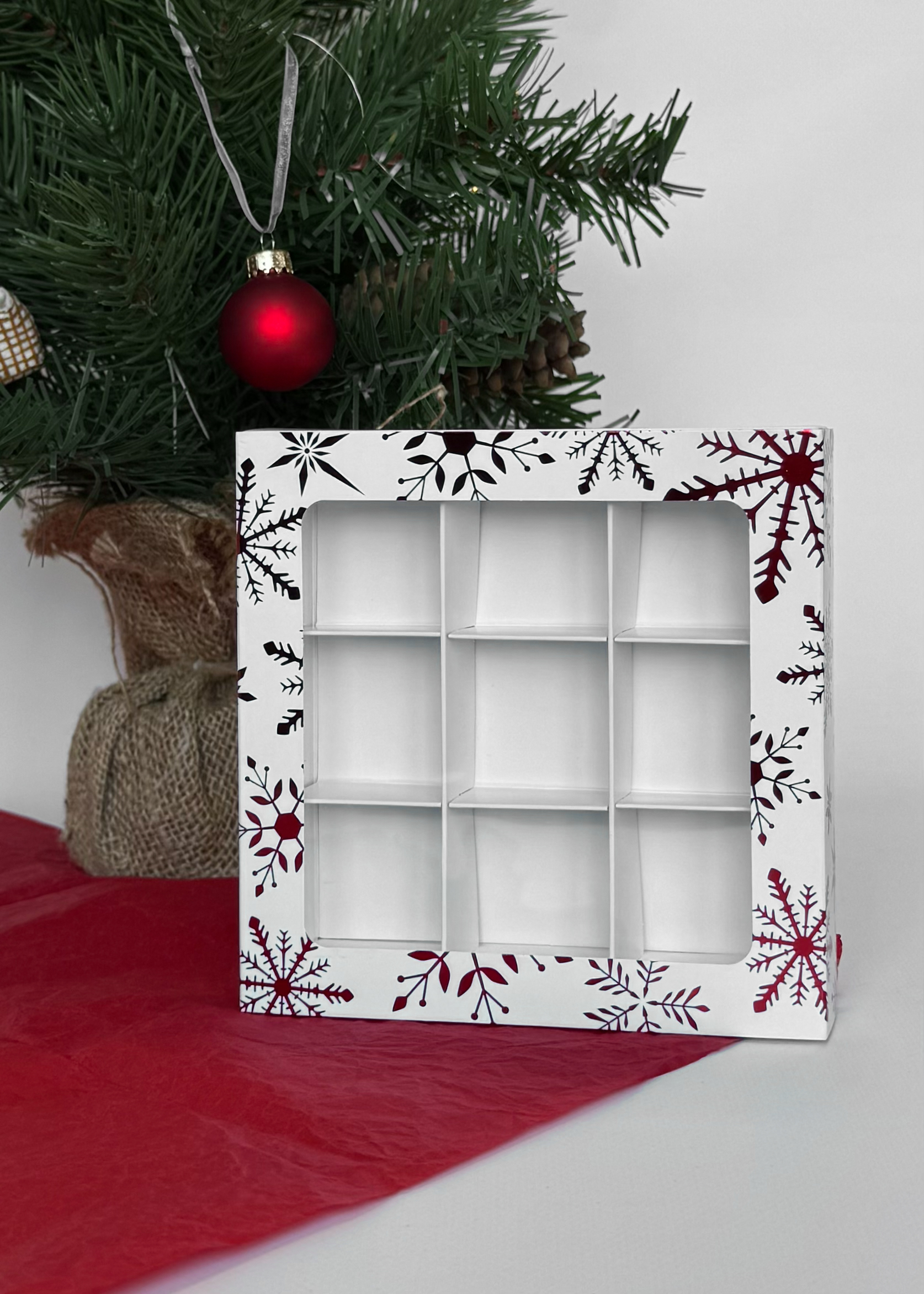 Коробка с окном под 9 конфет Веселая Елка, 138х138х38 мм (дно и обечайка)
