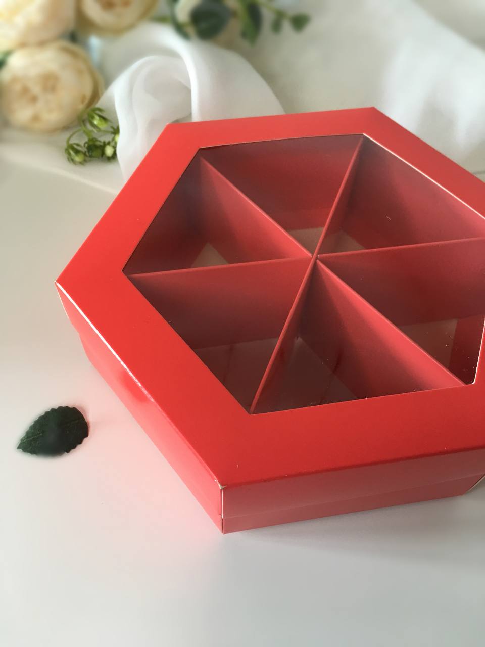 Менажница шестигранник под орехи/сухофрукты/конфеты/чай, красный