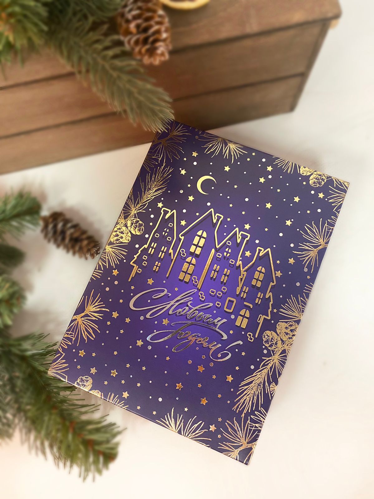 Коробка подарочная синяя Зимнее вдохновение, 223х223х63 мм