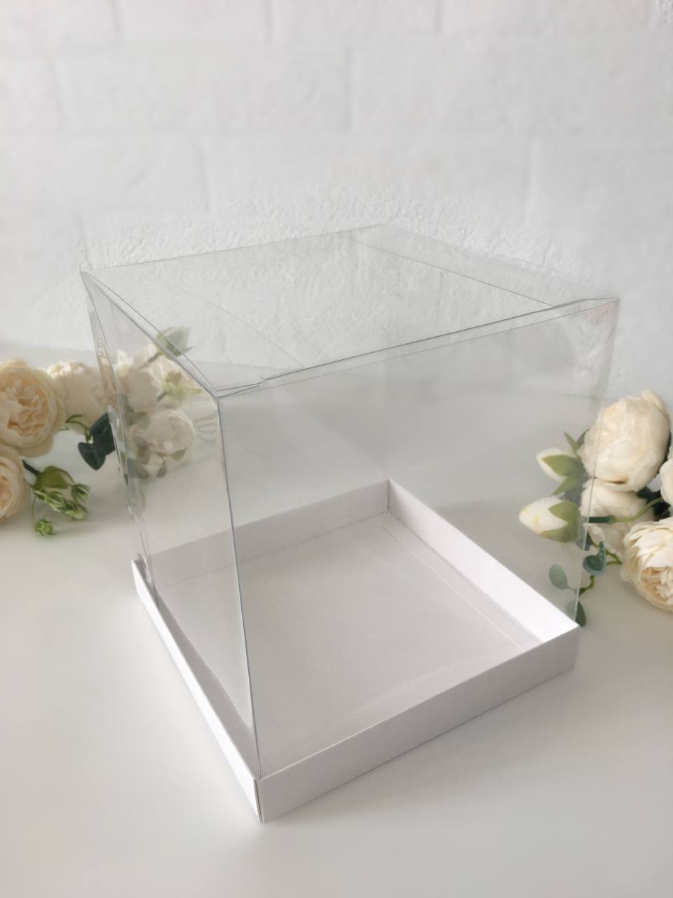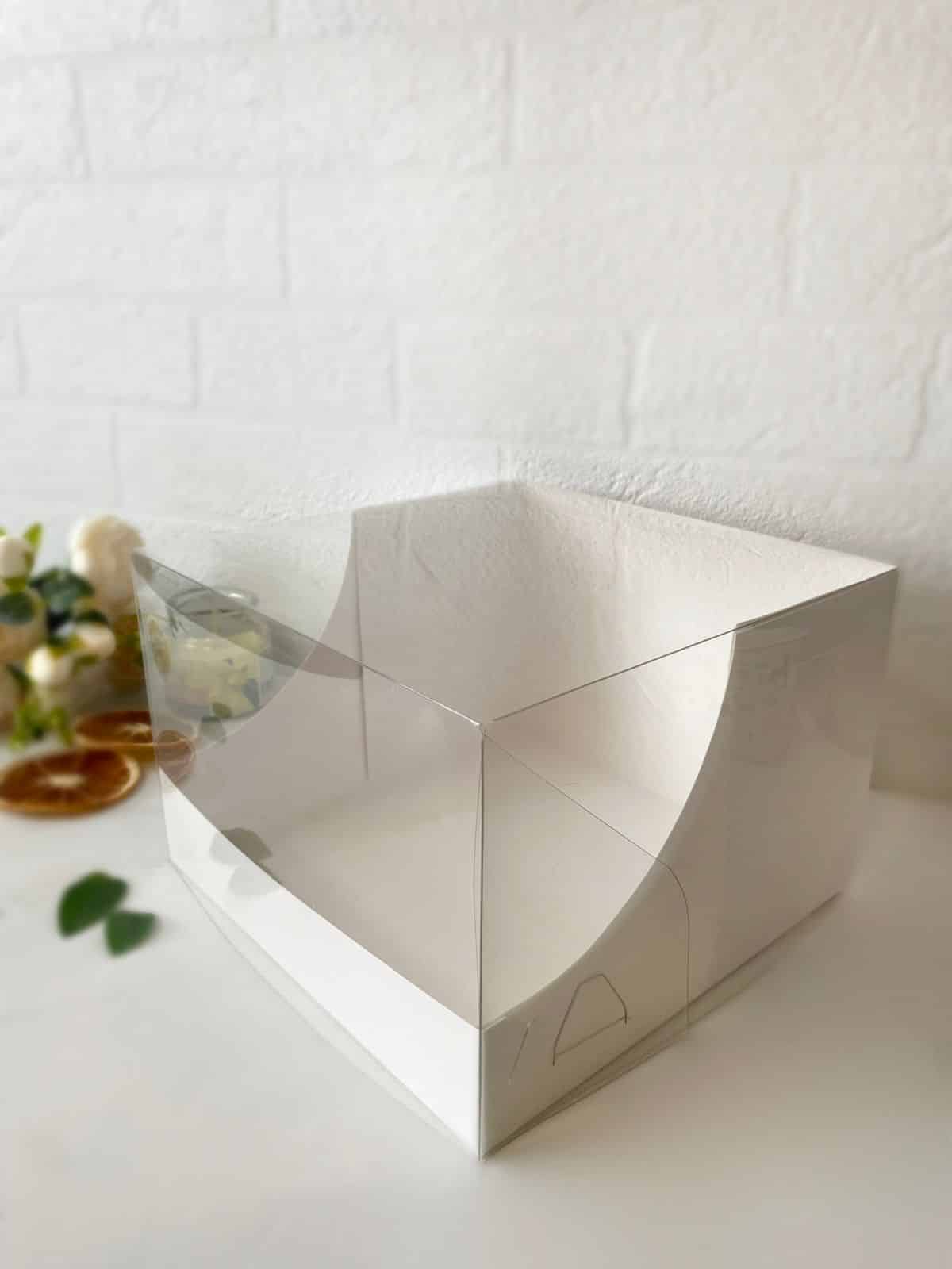 Коробка с прозрачной крышкой под торт 20,5х20,5х14 см, белый