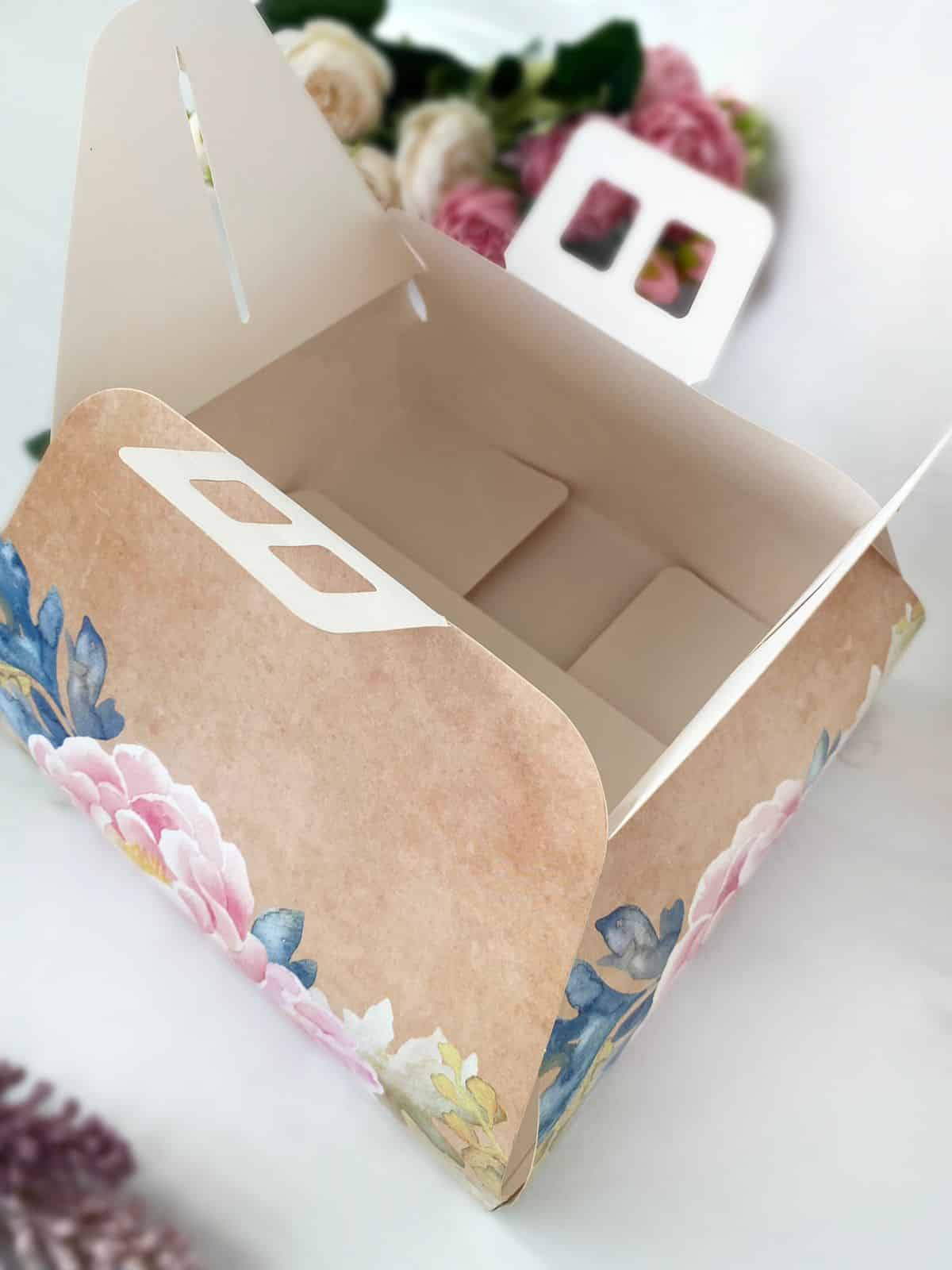 Упаковка под 4 капкейка/пирожных/бенто-торт с окном «Нарциссы»