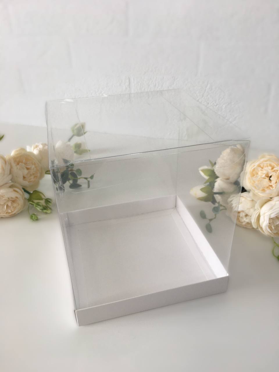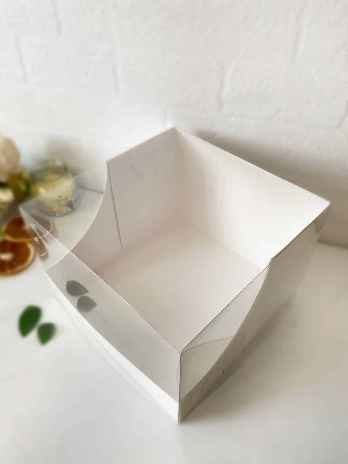 Коробка с прозрачной крышкой под торт 20,5х20,5х14 см, белый
