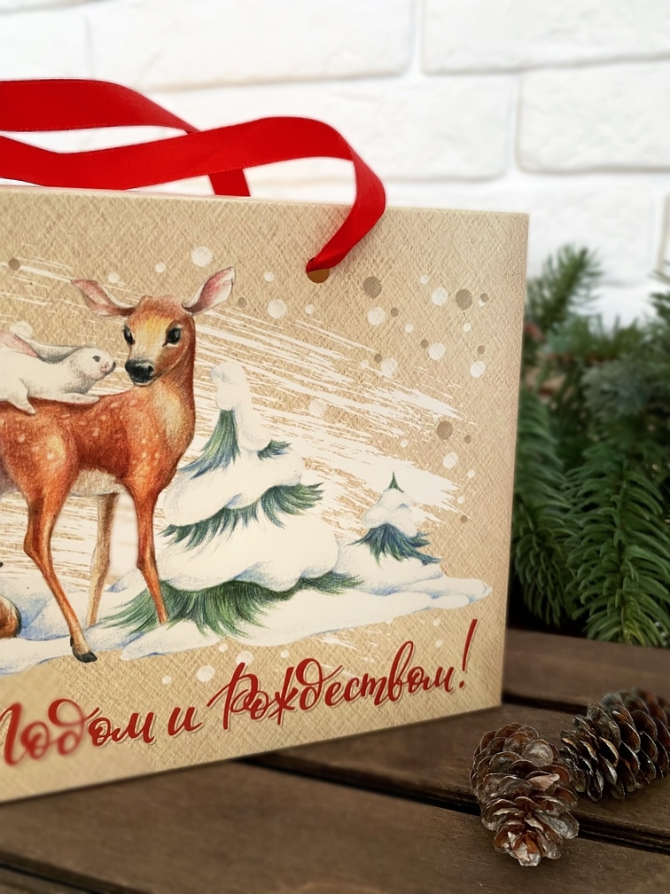 Новогодний набор состоит из зверушки держателя и пакета размером 10*12 см с липкой лентой. Подходит для размещения конфет, зефира, орешков или небольших подарочков размером не более 8*8*2 см. Дарите с удовольствием!