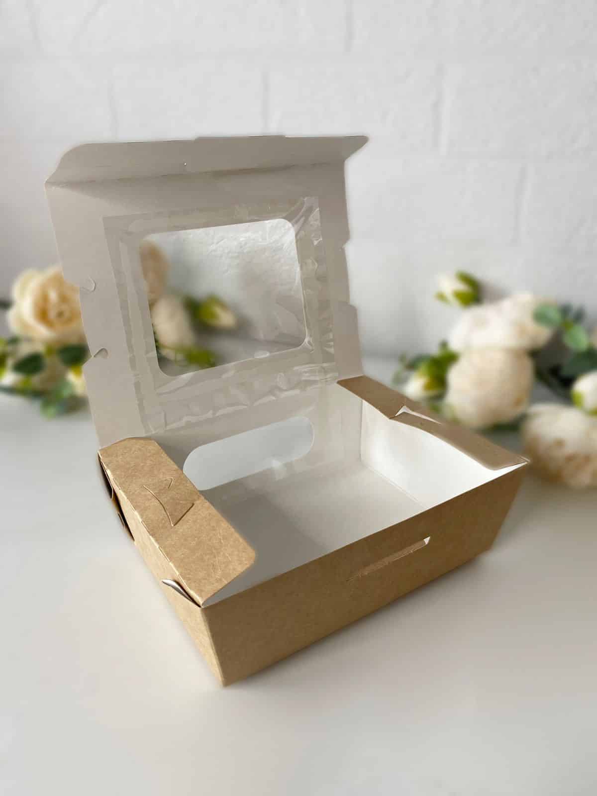 Контейнер с окошками подходит для упаковка салатов, горячих блюд, любой еды на вынос, а так же для размещения кондитерских изделий и десертов. Организуйте на природе пикник с друзьями или семьей, разместите в наши коробочки приготовленные закуски или еду, и отдыхайте с удовольствием:) Коробочки выполнены из бумаги, их легко утилизировать не нанося ущерба природе.