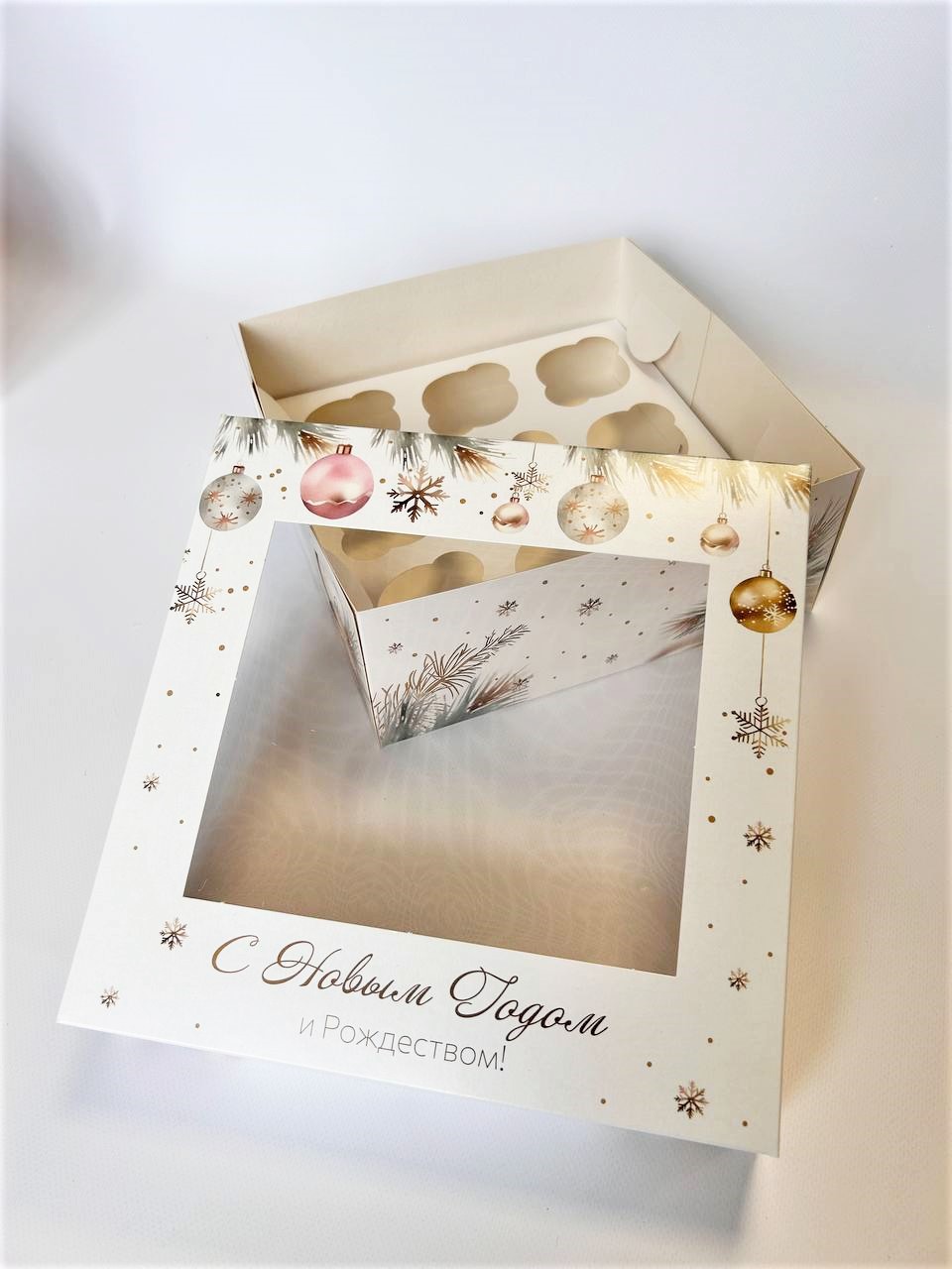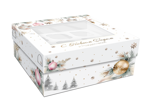 Коробка с окном под 9 капкейков Снежный праздник, 250х250х100 (крышка/дно)
