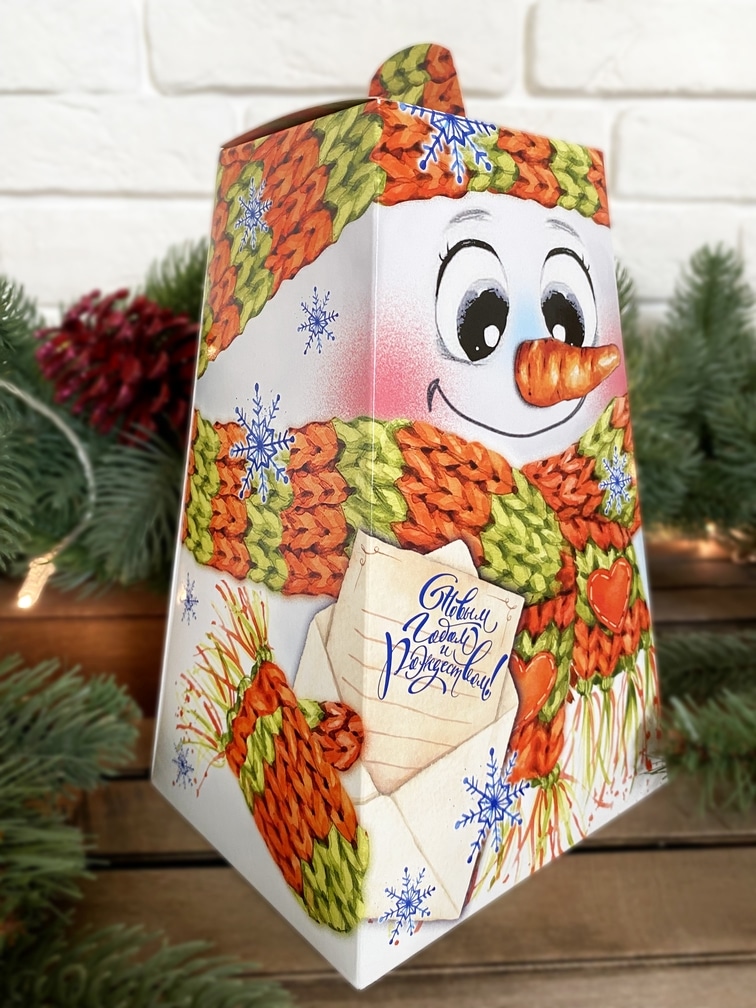 Новогодняя коробка с обечайкой - пенал на 9 конфет с внутренними разделителями для конфет с Новогодней тематикой, размер ячейки 35х35х35 мм. Без разделителей подходит для размещения пряников, печенья и иных сладких презентов. Может быть использована для размещения изделий ручной работы