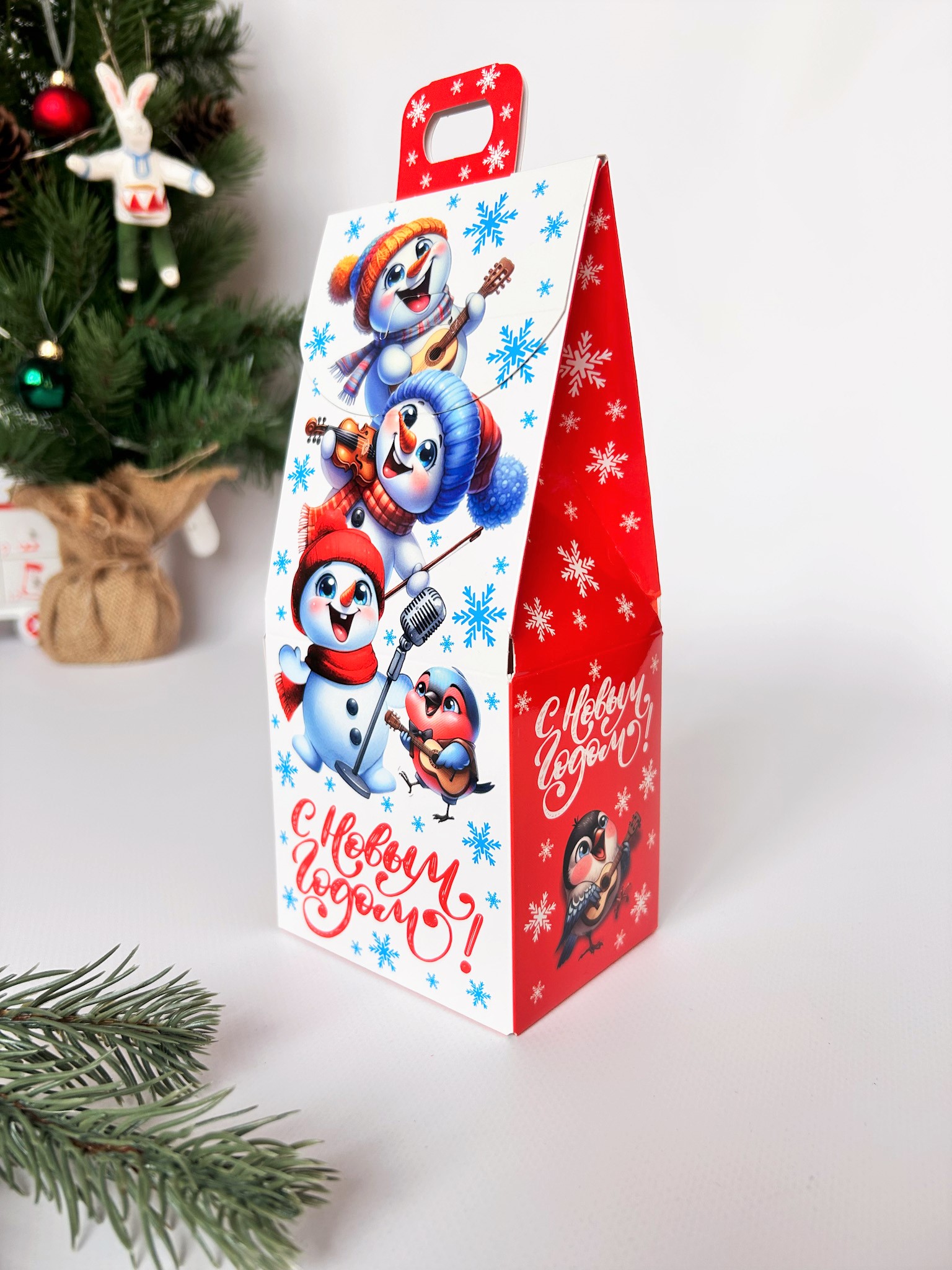 Коробка новогодняя подарочная Новогодний квинтет, 90х70х200 (+30) мм (домик)