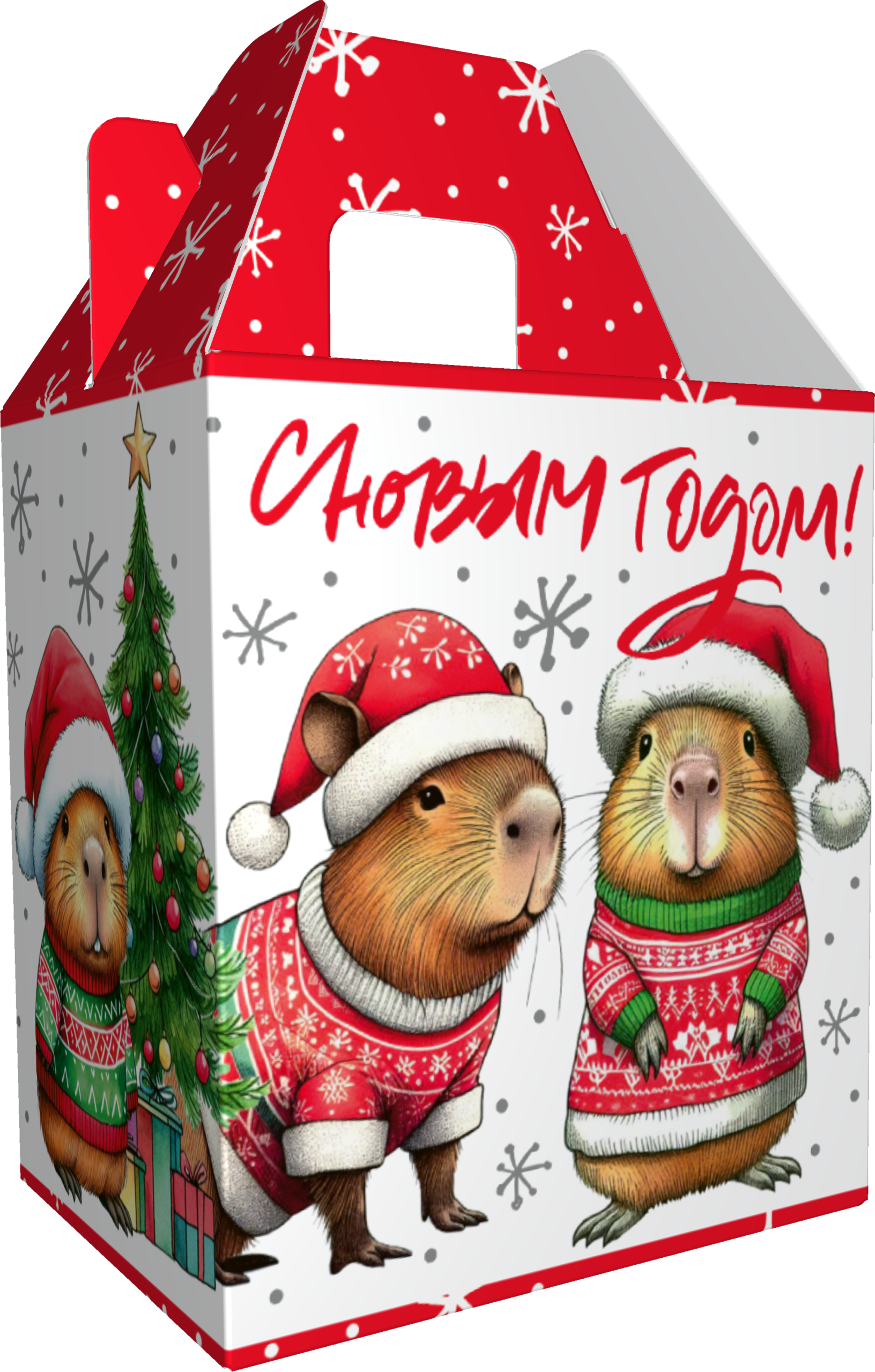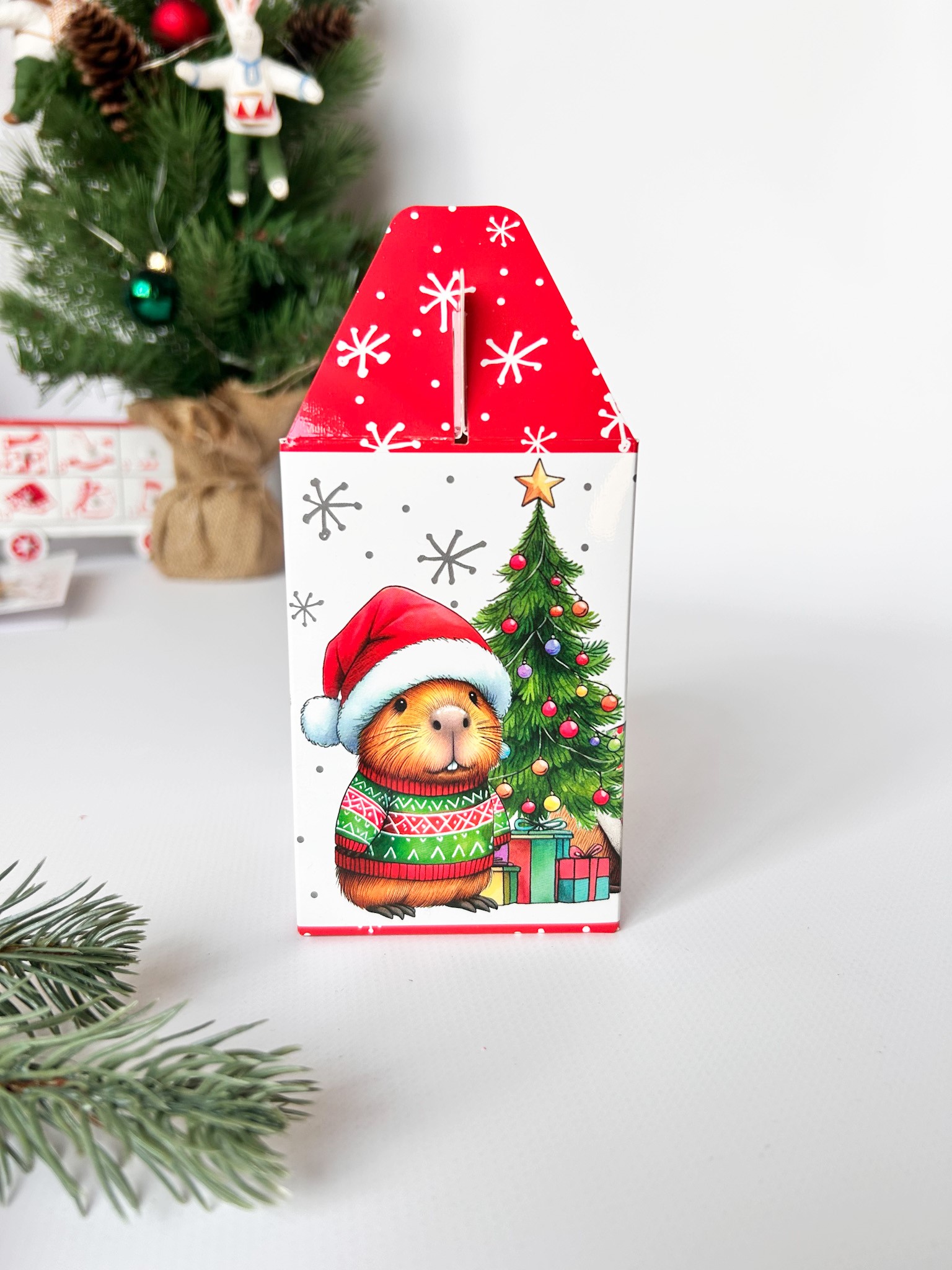 Коробка новогодняя подарочная Капибары, 97х74х112 (+48) мм (моноблок)