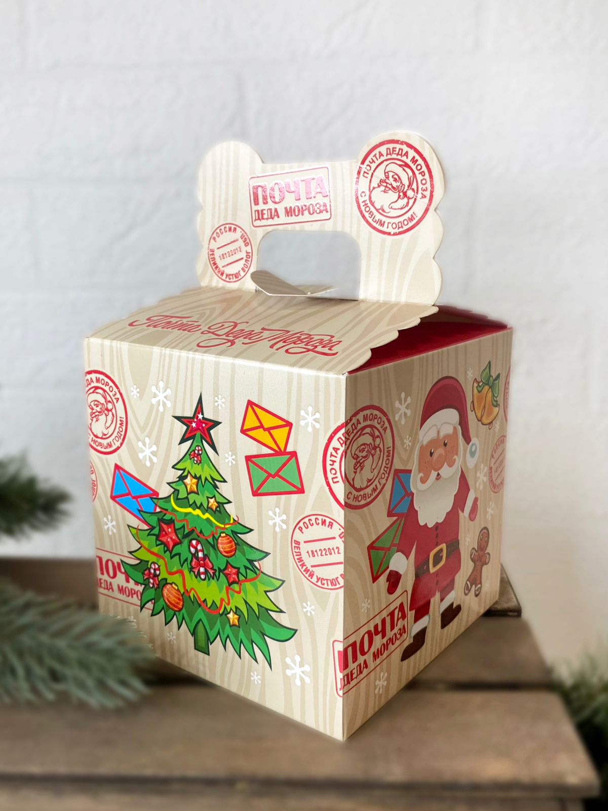 Подарочная коробка новогодней тематики, размеры 10,8х10,8х10,8 см., продается упаковками по 5 шт (цена указана за 1 шт), вес подарка 500 гр
