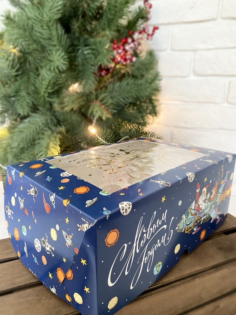 Новогодняя упаковка в виде сумочки для удержания купольной упаковки для 1 капкейка/пирожного/шоколадной фигурки. В комплект выходит сумочка, 2 круглые подложки под пирожные диаметром 8,5 см и 2 бирочки с пожеланиями.