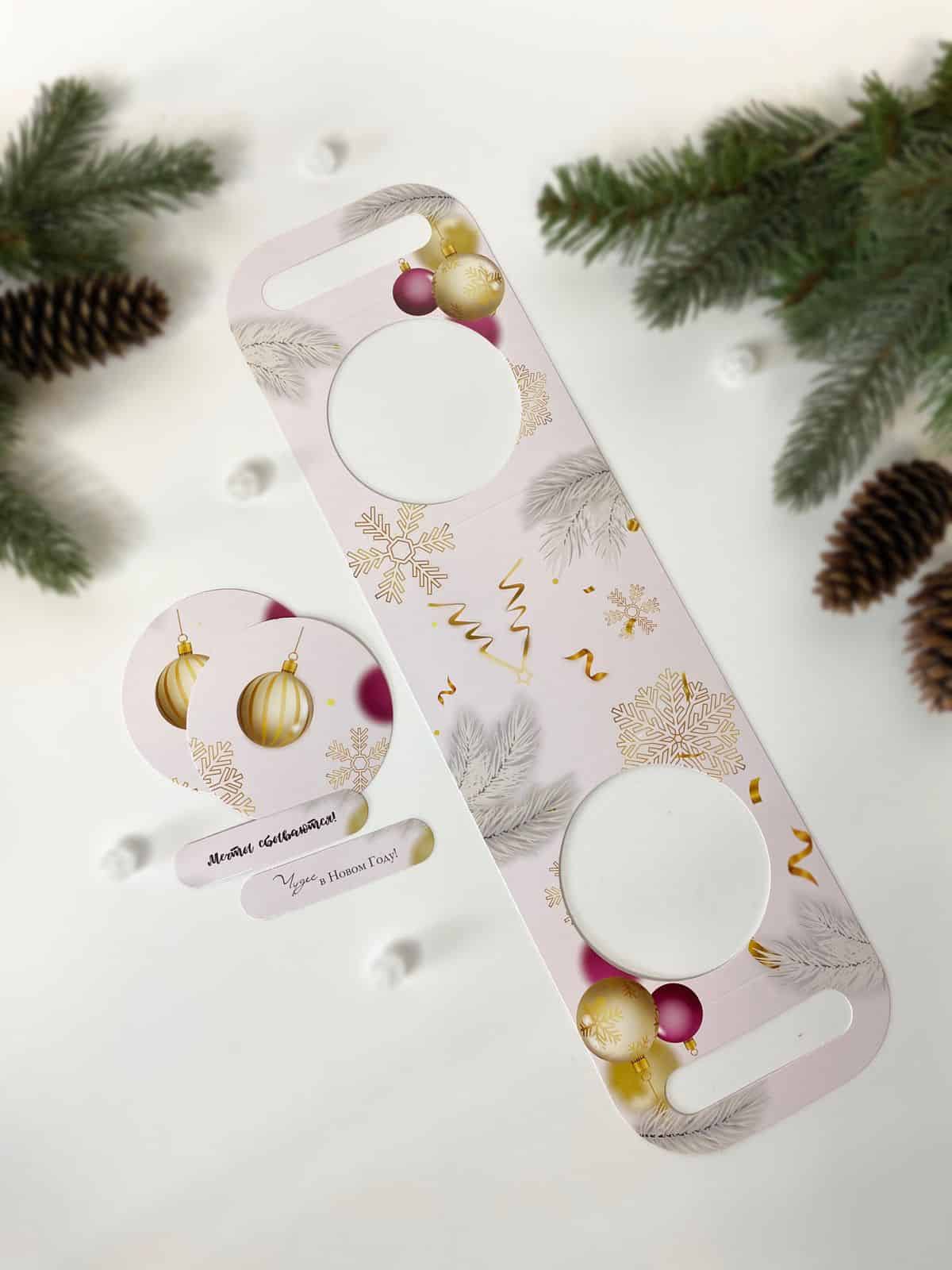 Новогодняя новинка 2023-2024 года. Упаковка в виде сумочки для удержания купольной упаковки для 1 капкейка/пирожного/шоколадной фигурки. Размер изделия в собранном виде: высота с ручкой 15 см, ширина 10,5 см, глубина 11,2 см. В комплекс выходит сумочка, 2 круглые подложки под пирожные диаметром 8,5 см и 2 бирочки с пожеланиями.