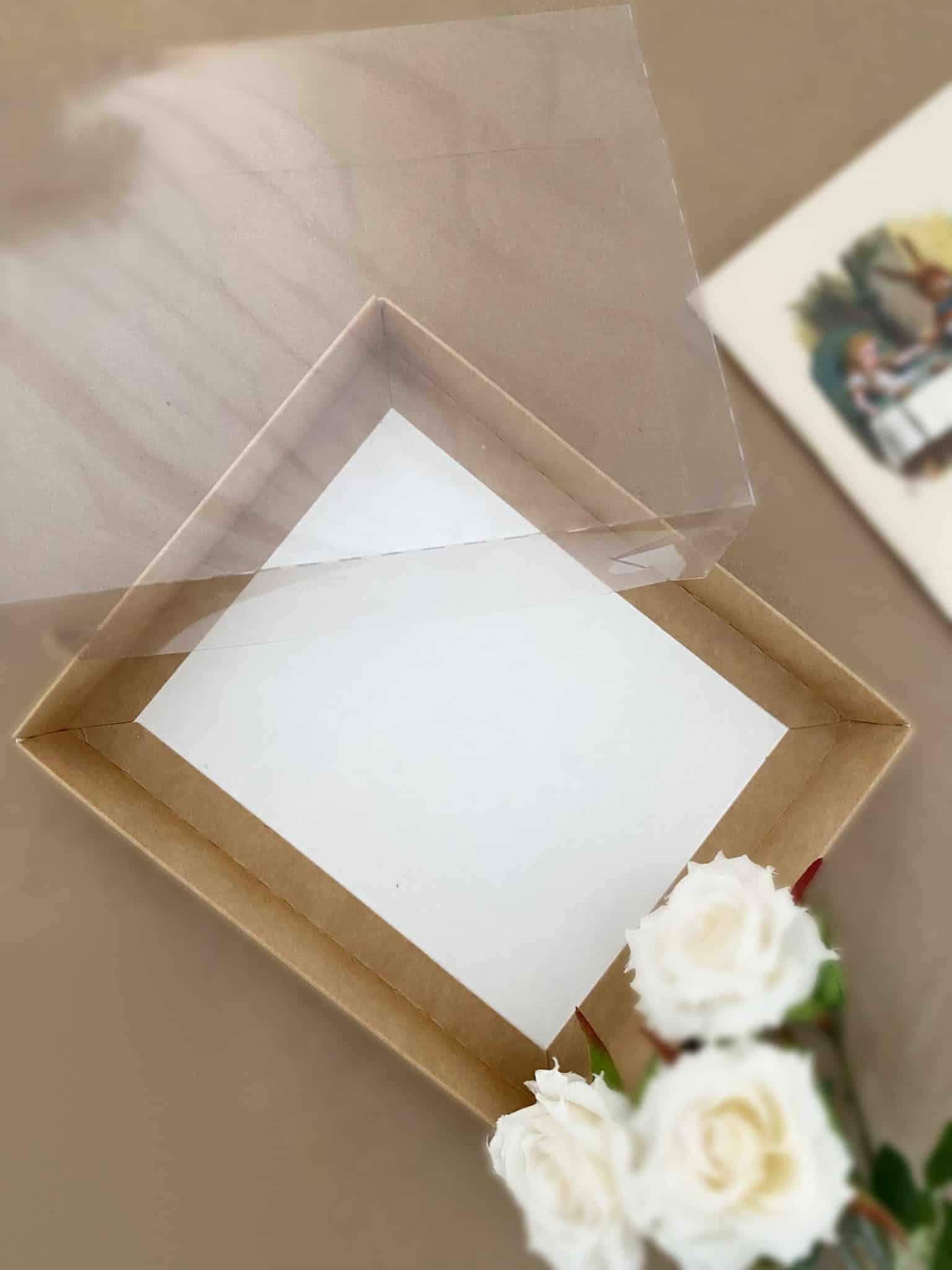 Универсальная коробка с прозрачной крышкой 16х13х4 см., крафт