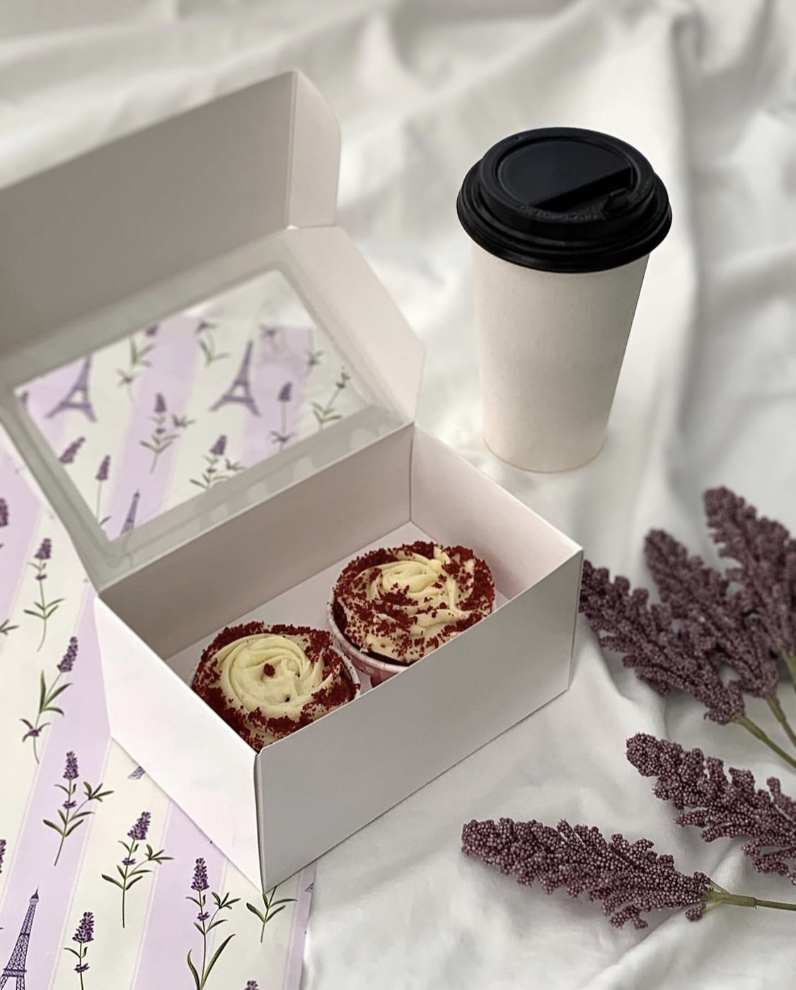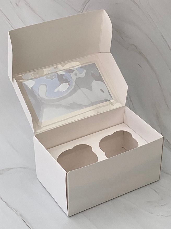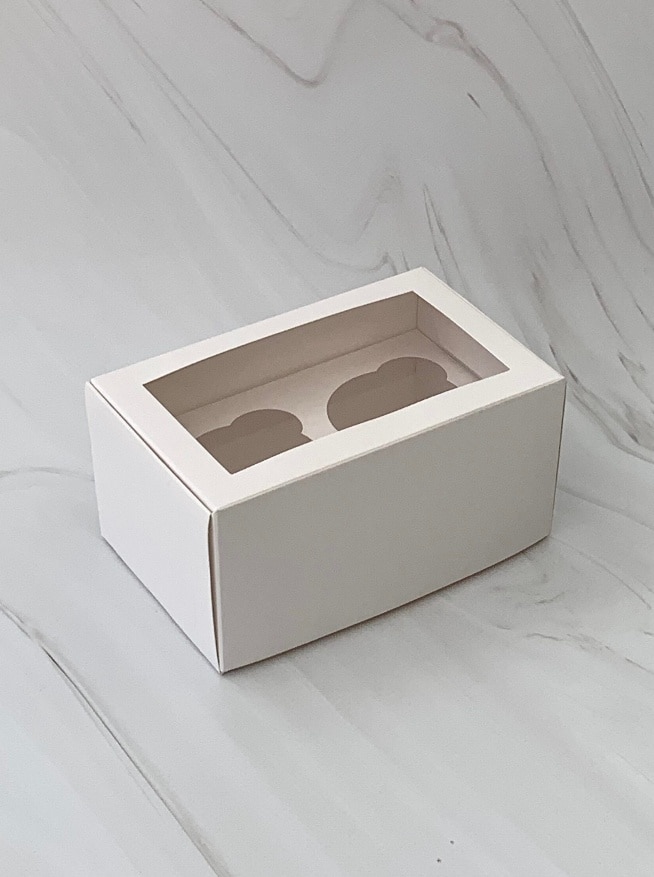 Упаковка под 2 капкейка с окном, белая