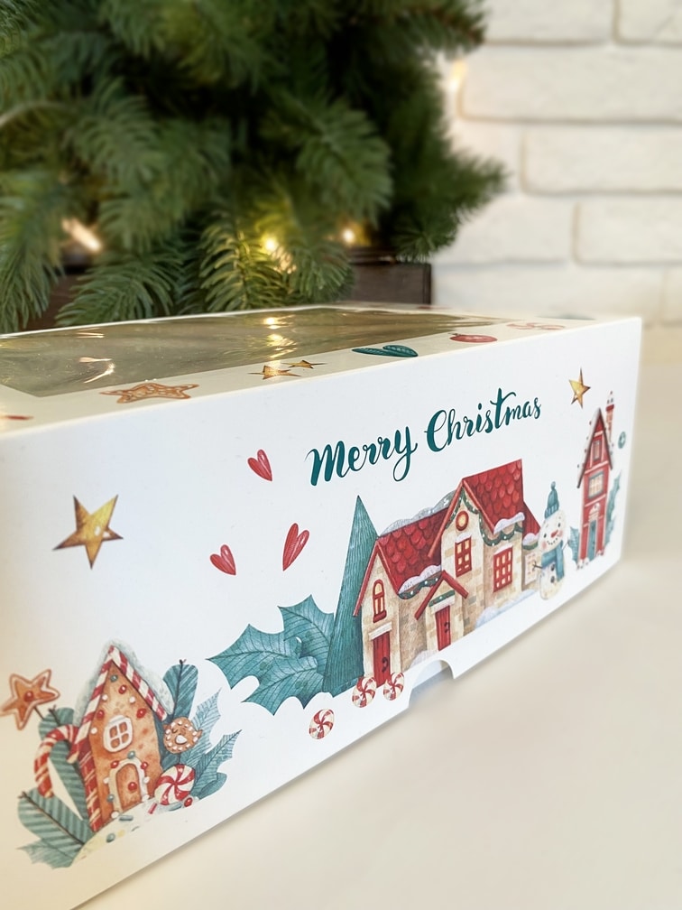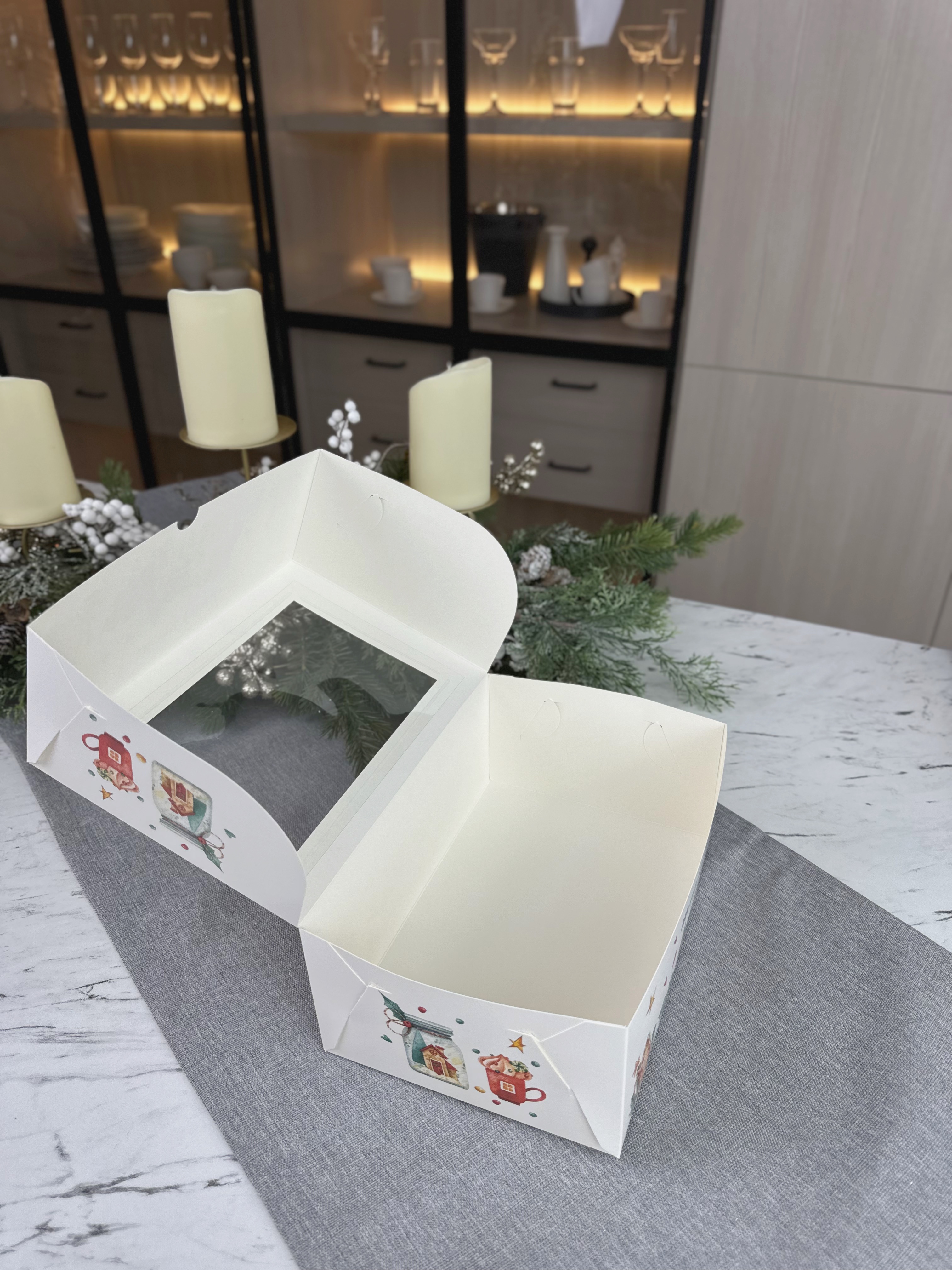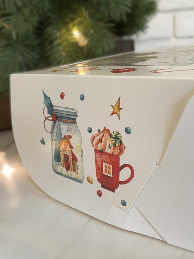 Кондитерская упаковка. Тематическая к Новому году. Кондитерская упаковка. Подходит для размещения капкейков, трайфлов, пирожных, эклеров, зефира и других сладких презентов. Изготовлена из прочного целлюлозного картона