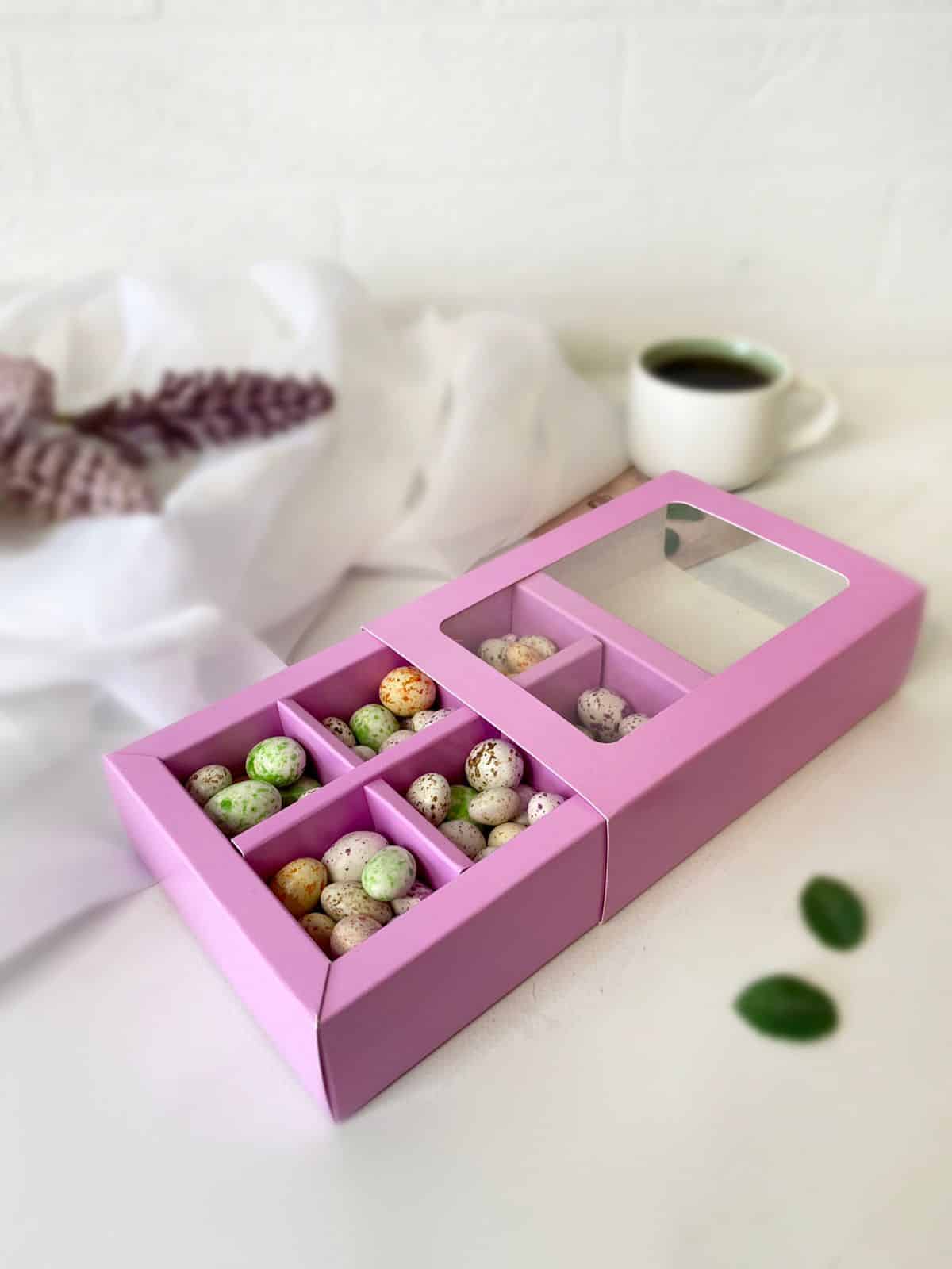 Коробка с обечайкой - коробка пенал на 6 конфет с внутренними разделителями. Подходит для пряников, мармелада и иных сладких презентов. Может быть использована для размещения изделий ручной работы
