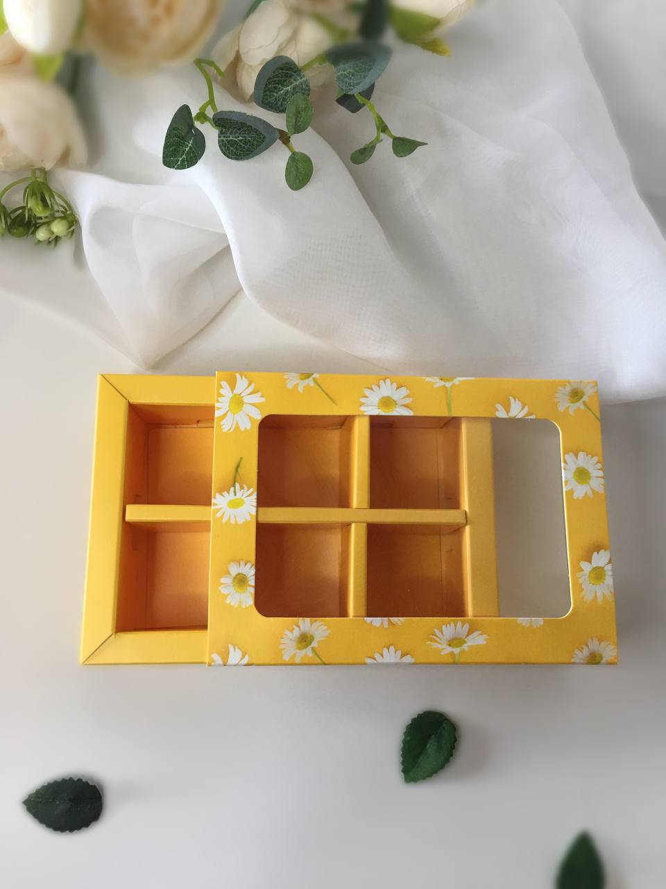 Коробка пенал на 6 конфет с внутренними разделителями, размер ячейки: 35х35х35 мм. Подходит для печенья, мармелада и иных сладостей. Может быть использована для размещения изделий ручной работы