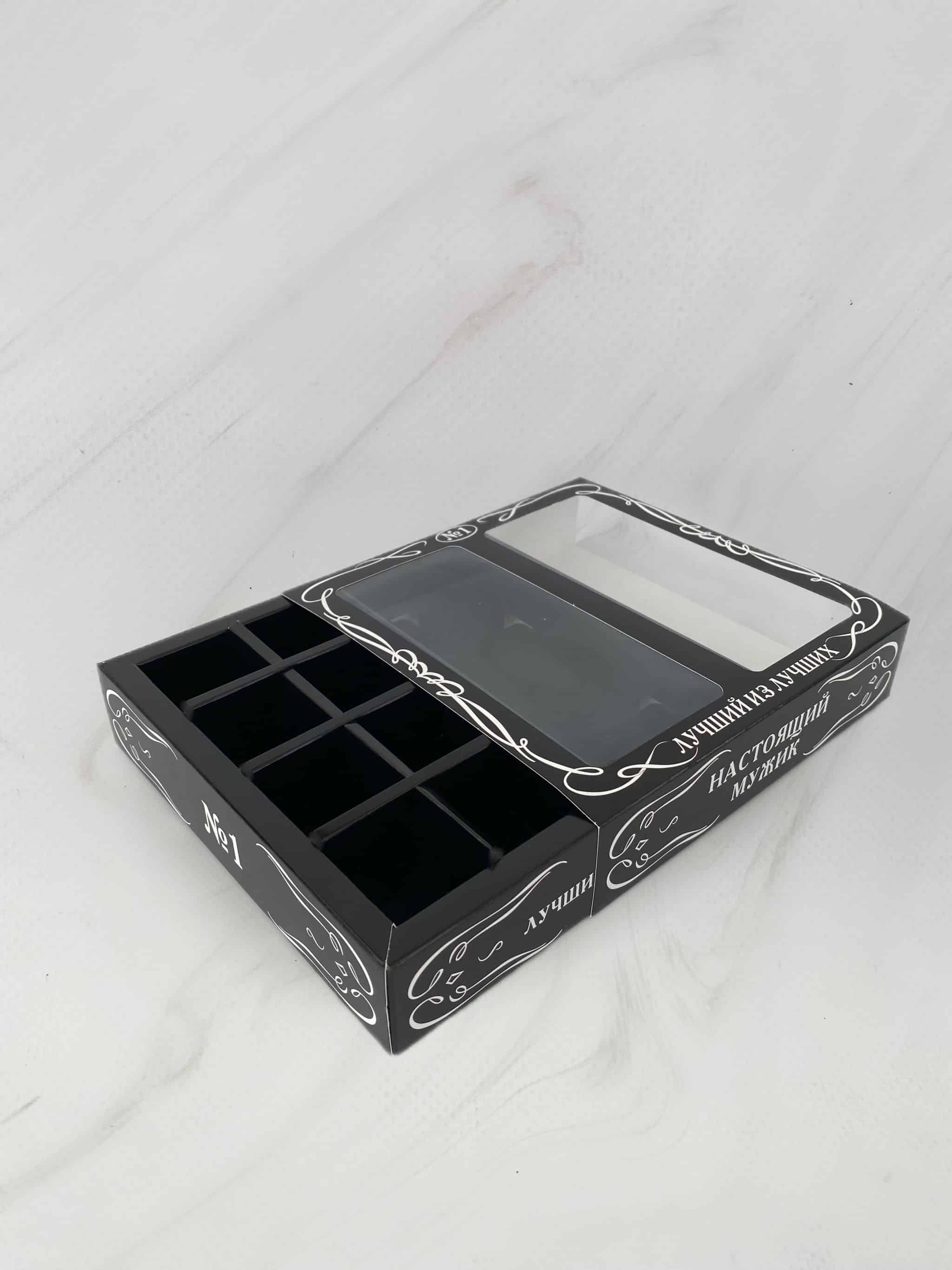 Упаковка под 8 конфет и плитку шоколада «Мужская черная»