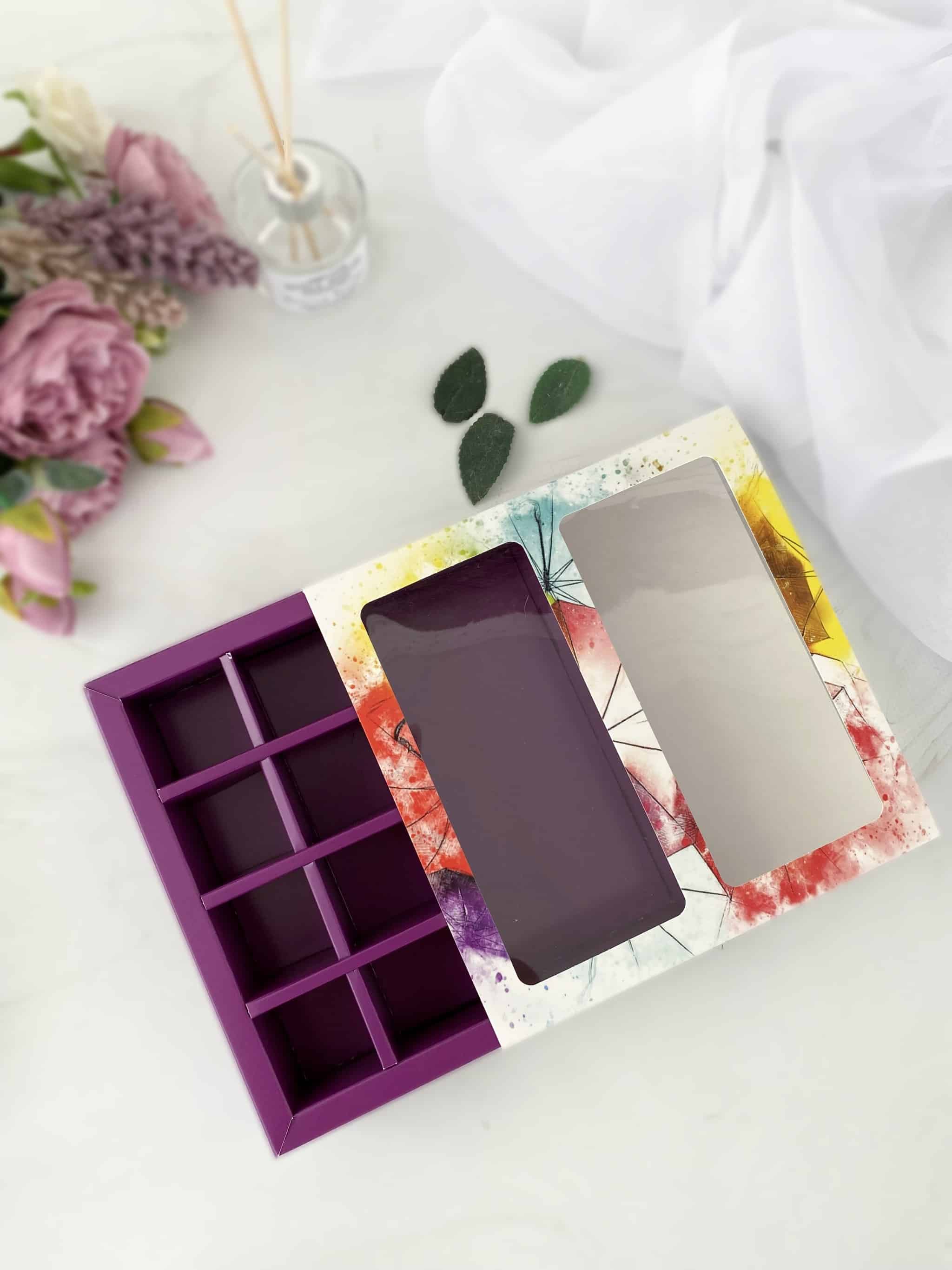 Коробка с обечайкой - коробка пенал на 8 конфет и шоколад с внутренними разделителями. Без разделителей подходит для размещения иных сладких презентов, подарков и изделий ручной работы