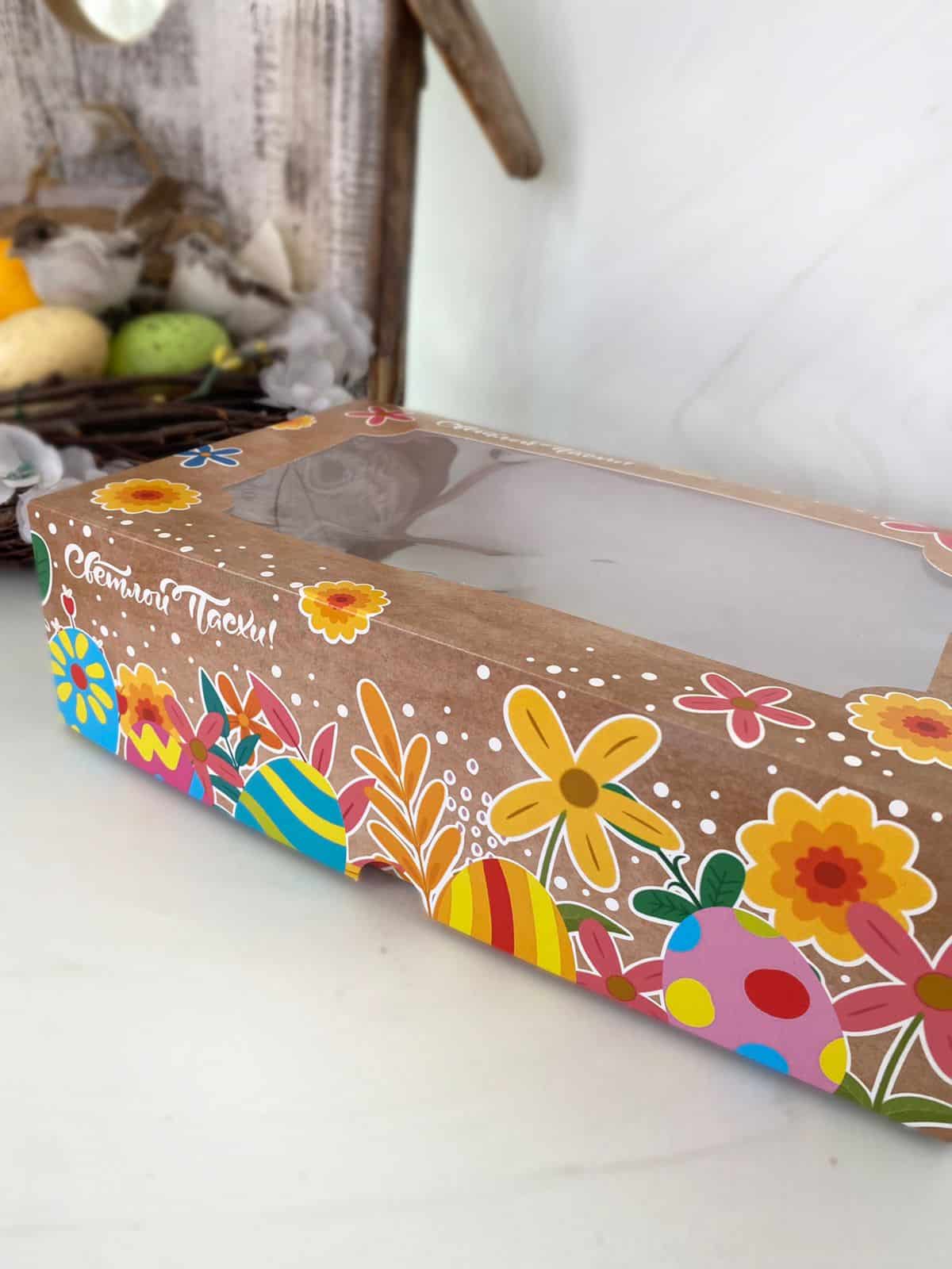 Подходит для размещения пасхального кулича, праздничного кекса. Выполнен из прочного целлюлозного картона, хорошо держит форму и предотвращает повреждение кондитерского изделия при транспортировке