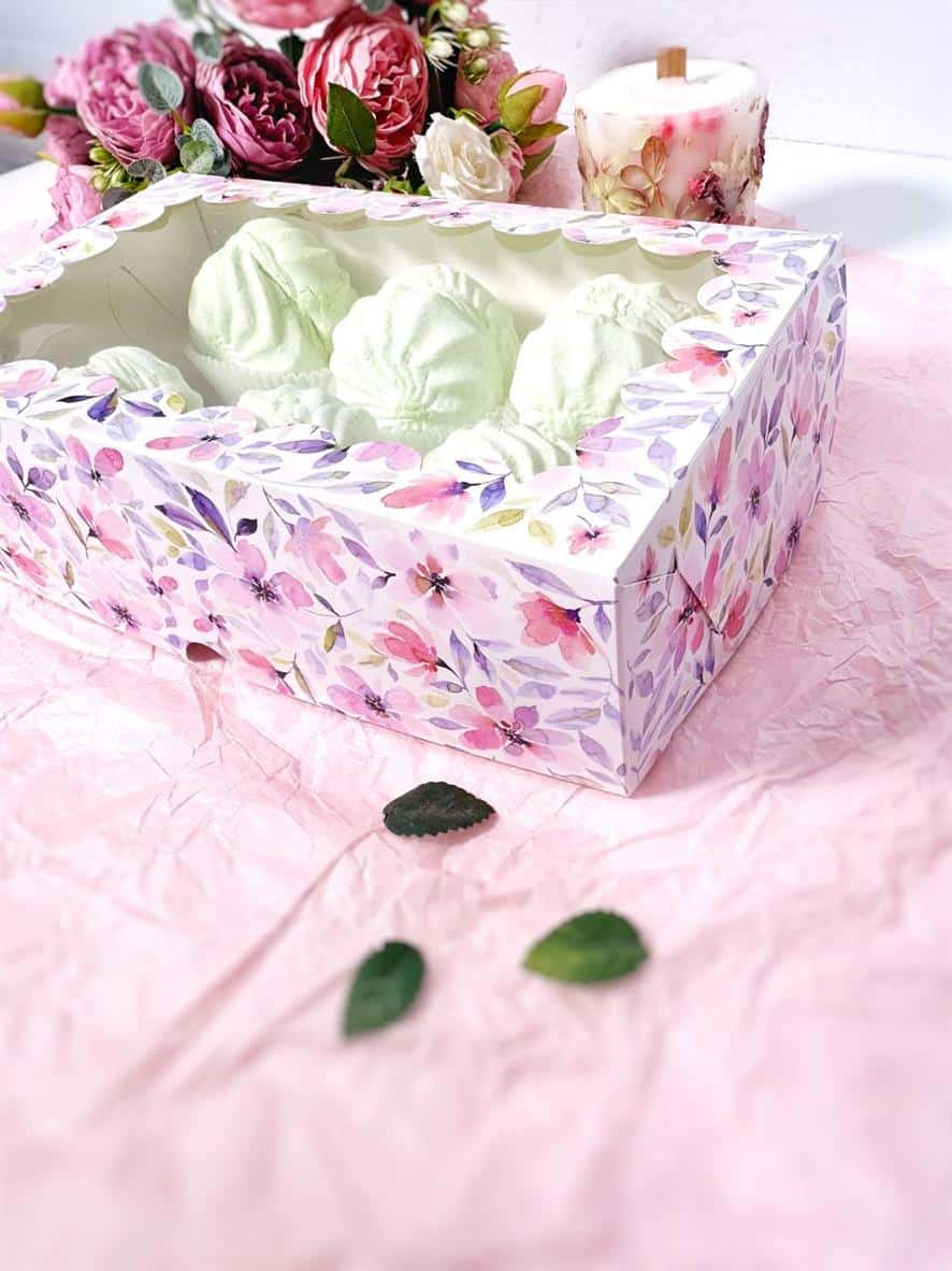 Кондитерская упаковка подходит для размещения зефира, печенья, пряников, пирожных и иных сладких презентов. Может быть использована как универсальная коробка для подарков и изделий ручной работы.